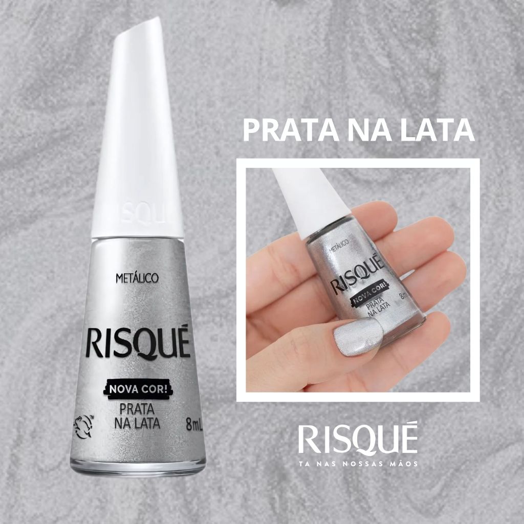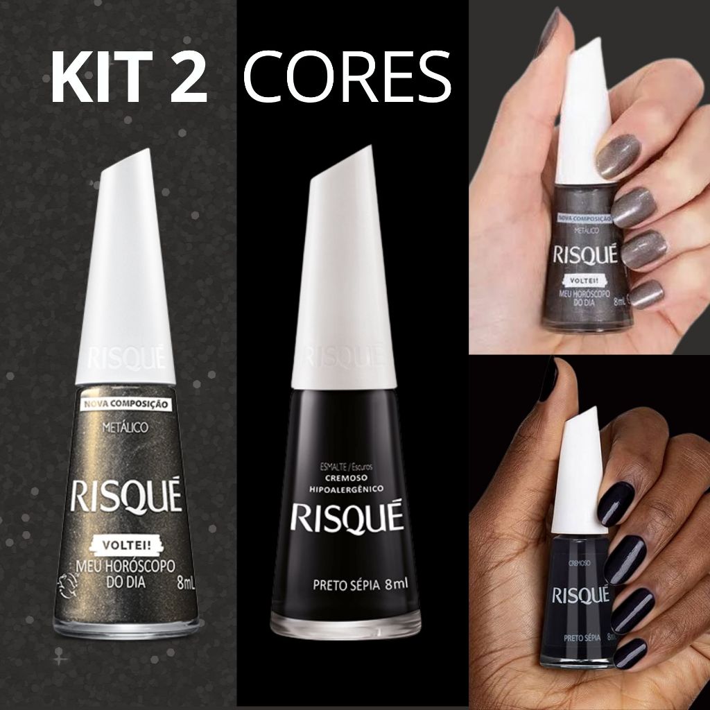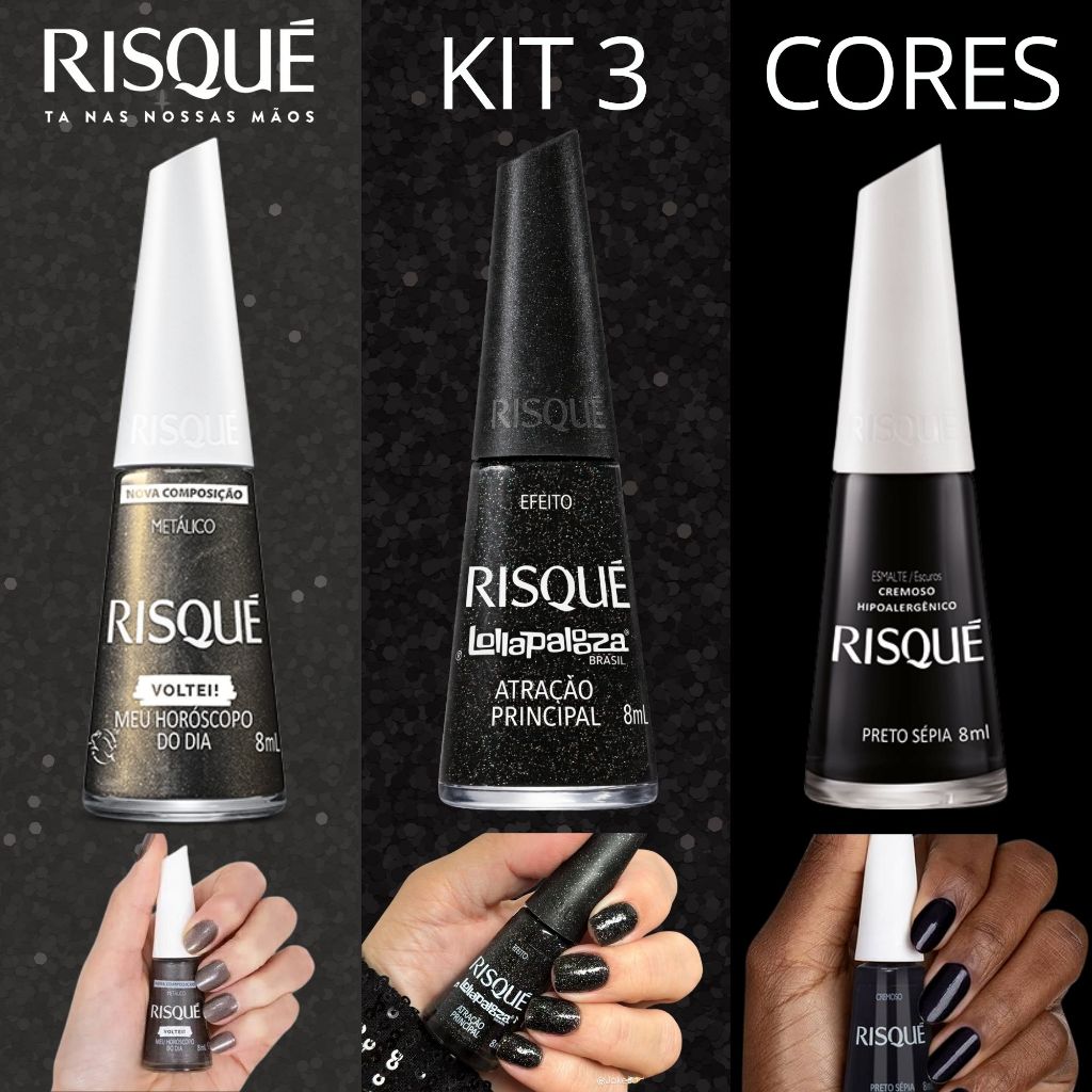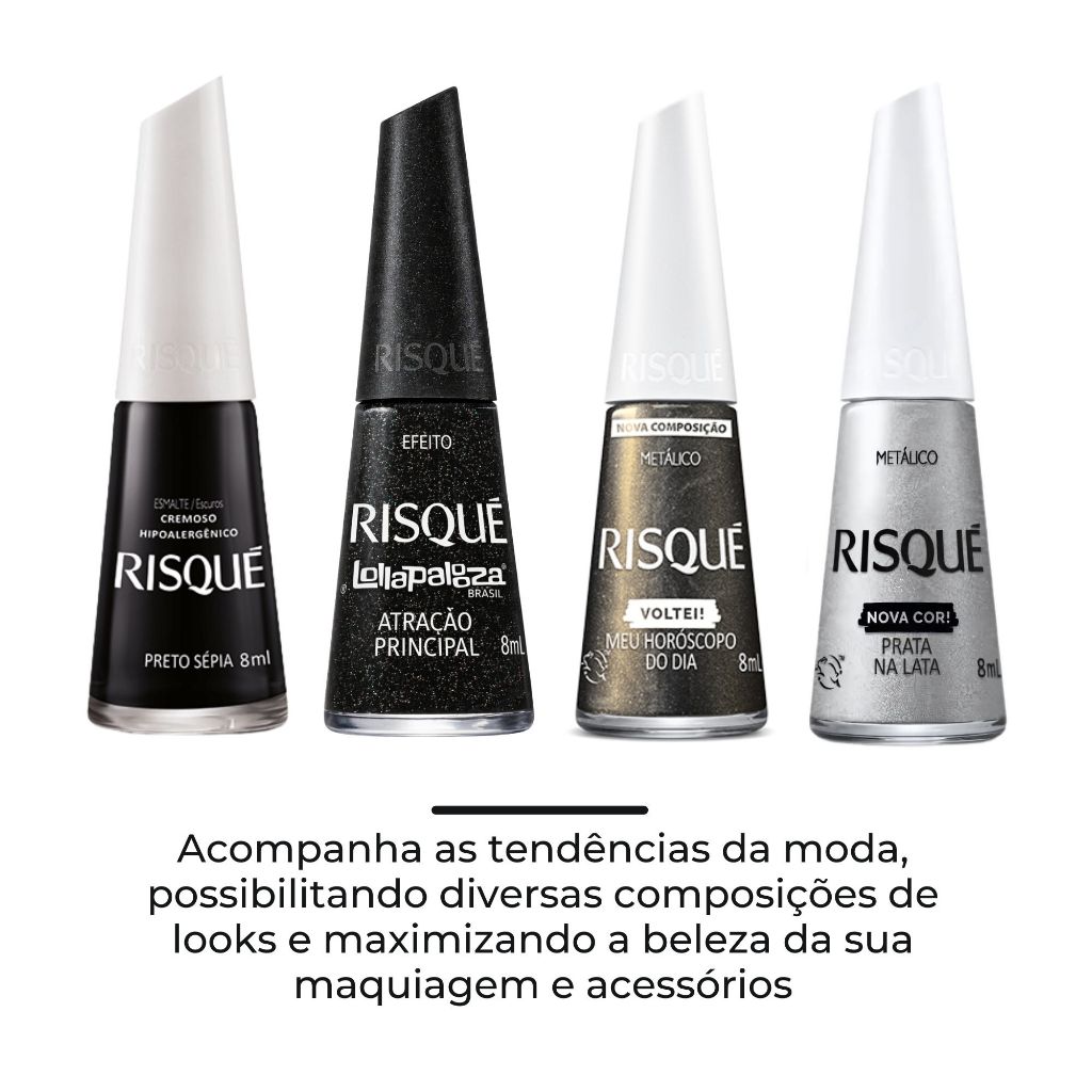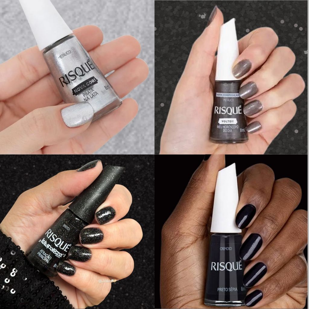 Kit 4 Esmaltes Risqué Tons Cinza Preto Metalico Brilho Nova Coleção lollapalooza