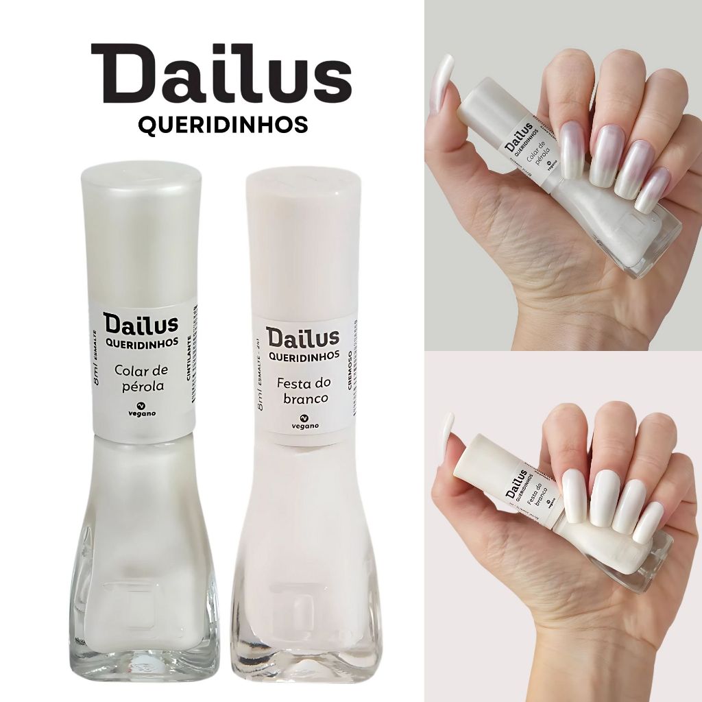 Kit 3 Esmaltes Dailus Brancos Esmalte Atacado Francesinha Perolados Cremosos