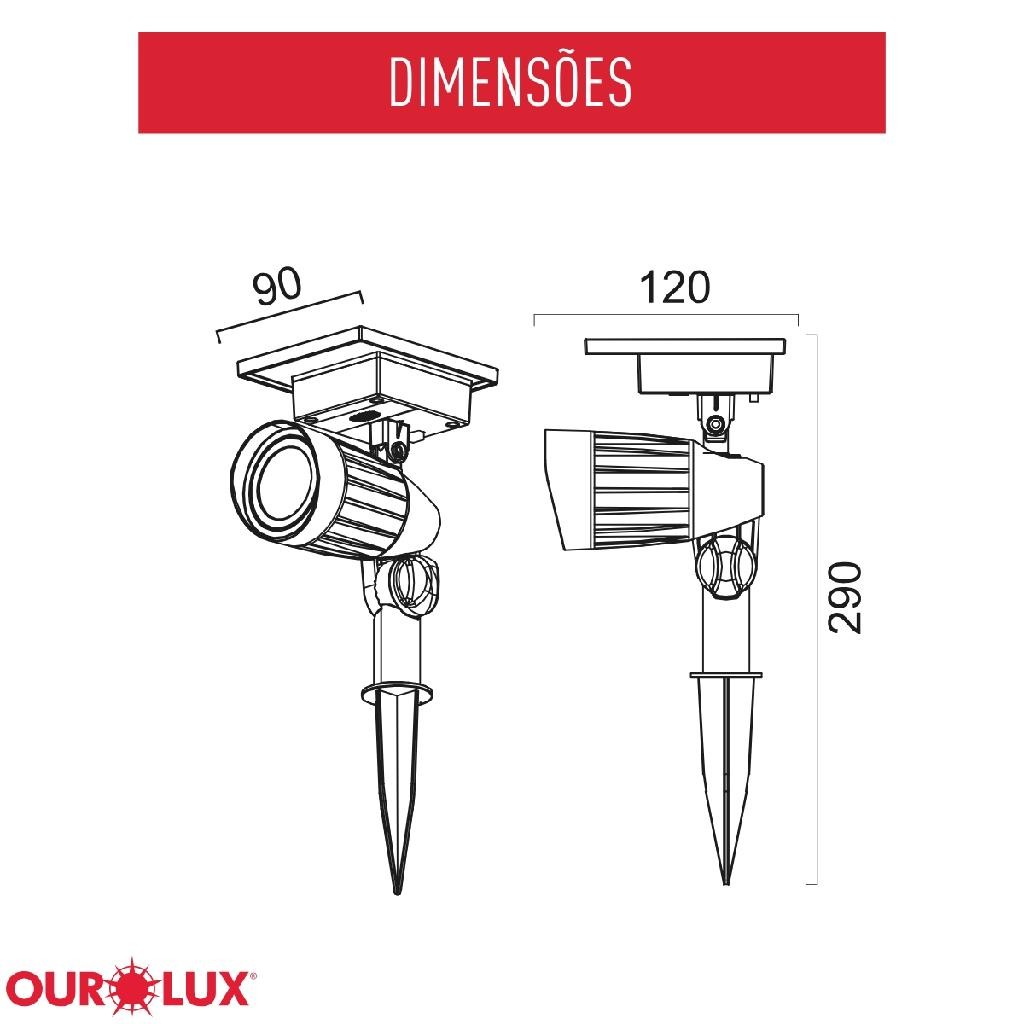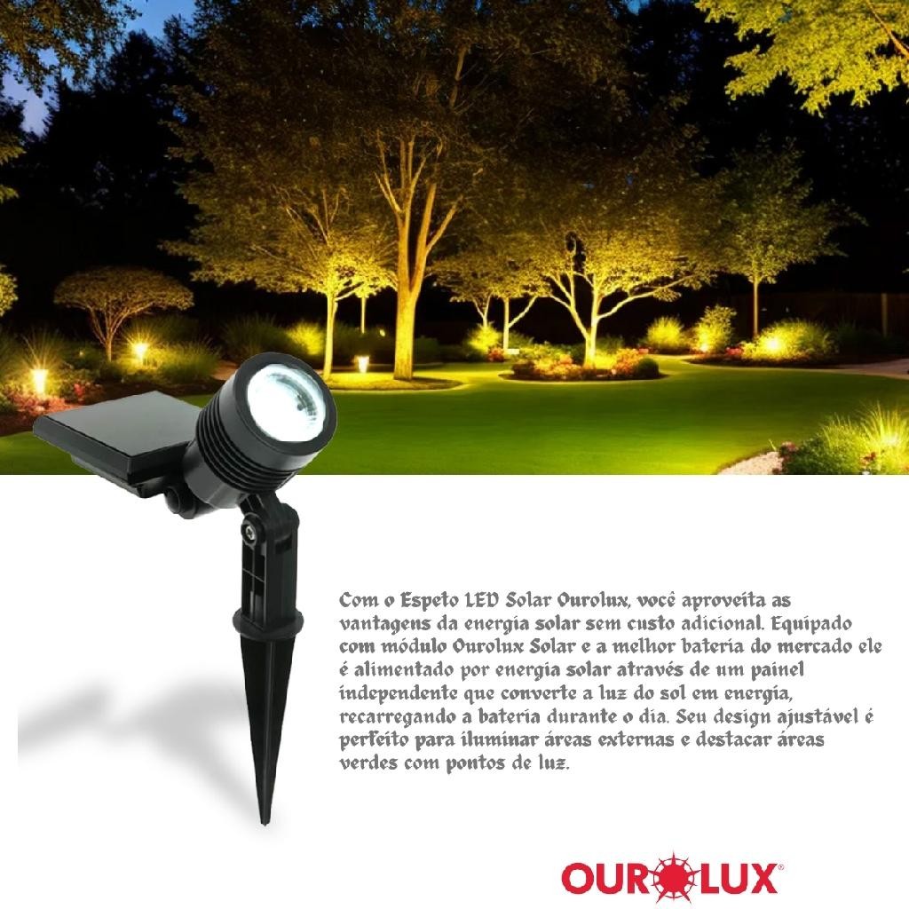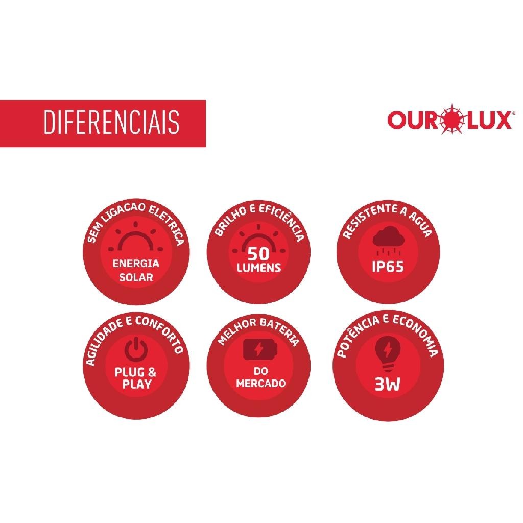 Espeto Solar LED 3W 50 Lumens 6500K Ourolux Branco Frio