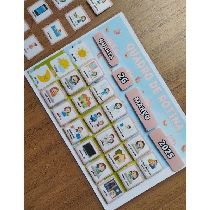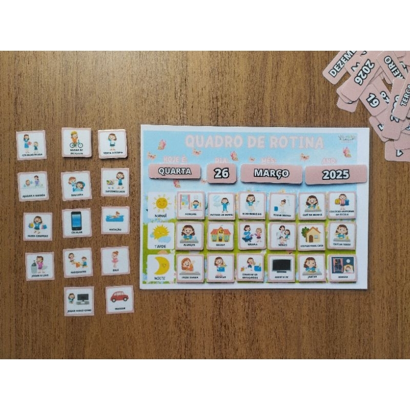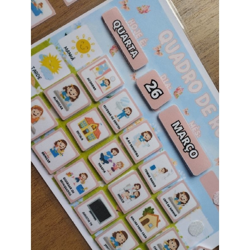 Quadro de rotina para menina/plastificado e com velcro/adaptados para autistas