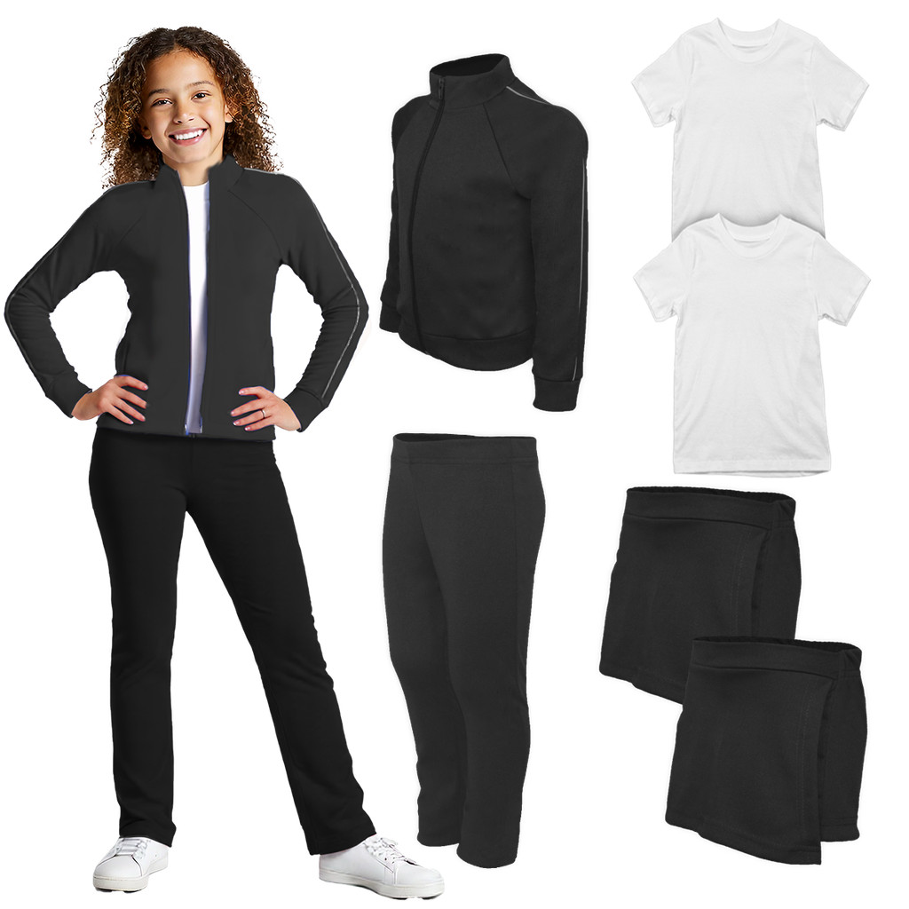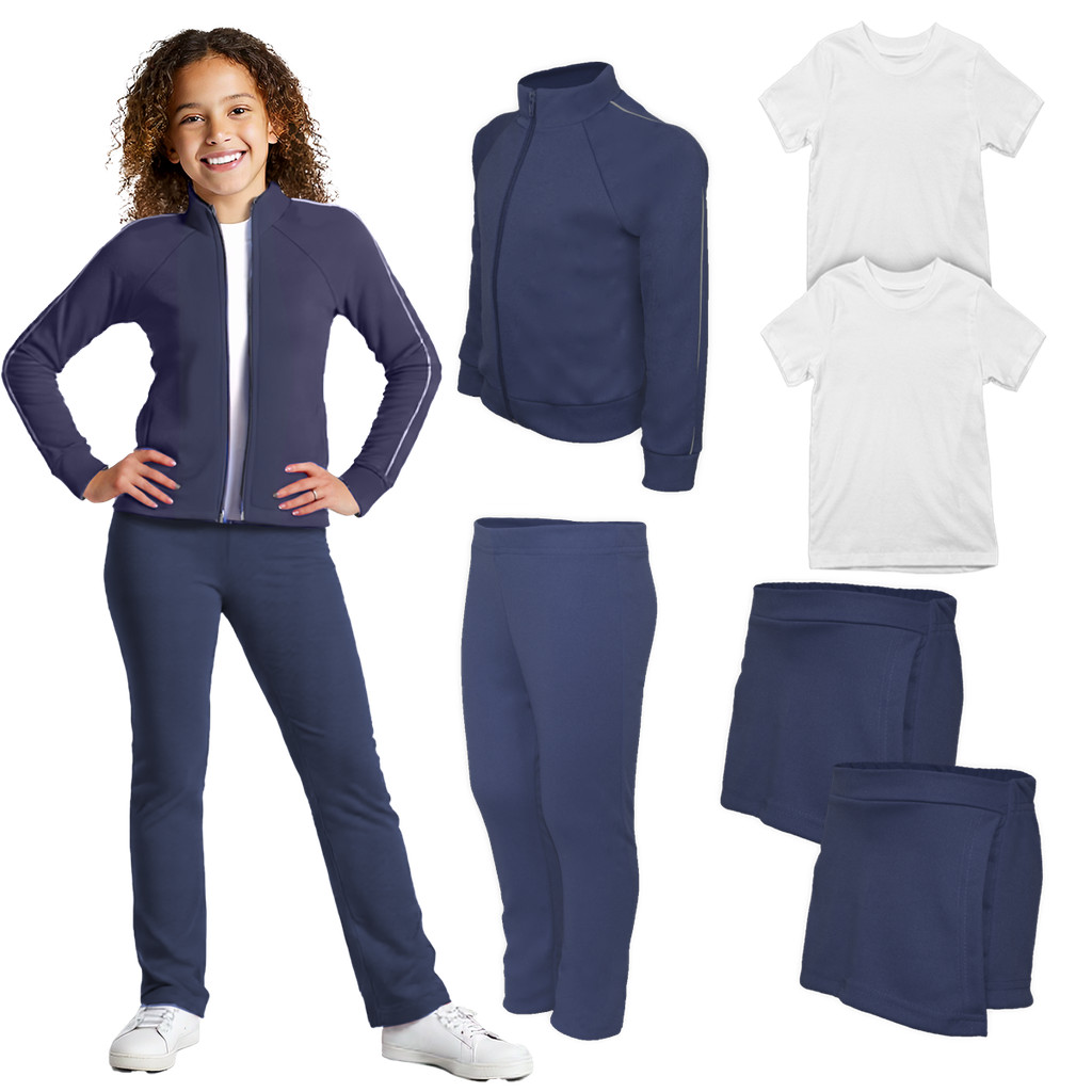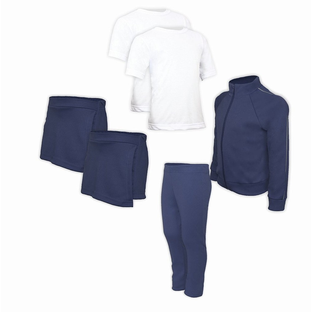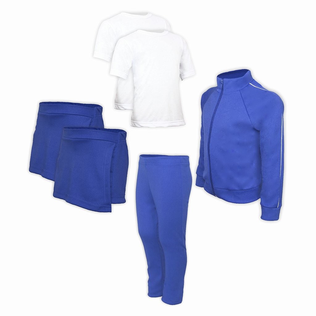 Kit Uniforme Escolar Feminino Infantil Helanca e 2 Camisetas