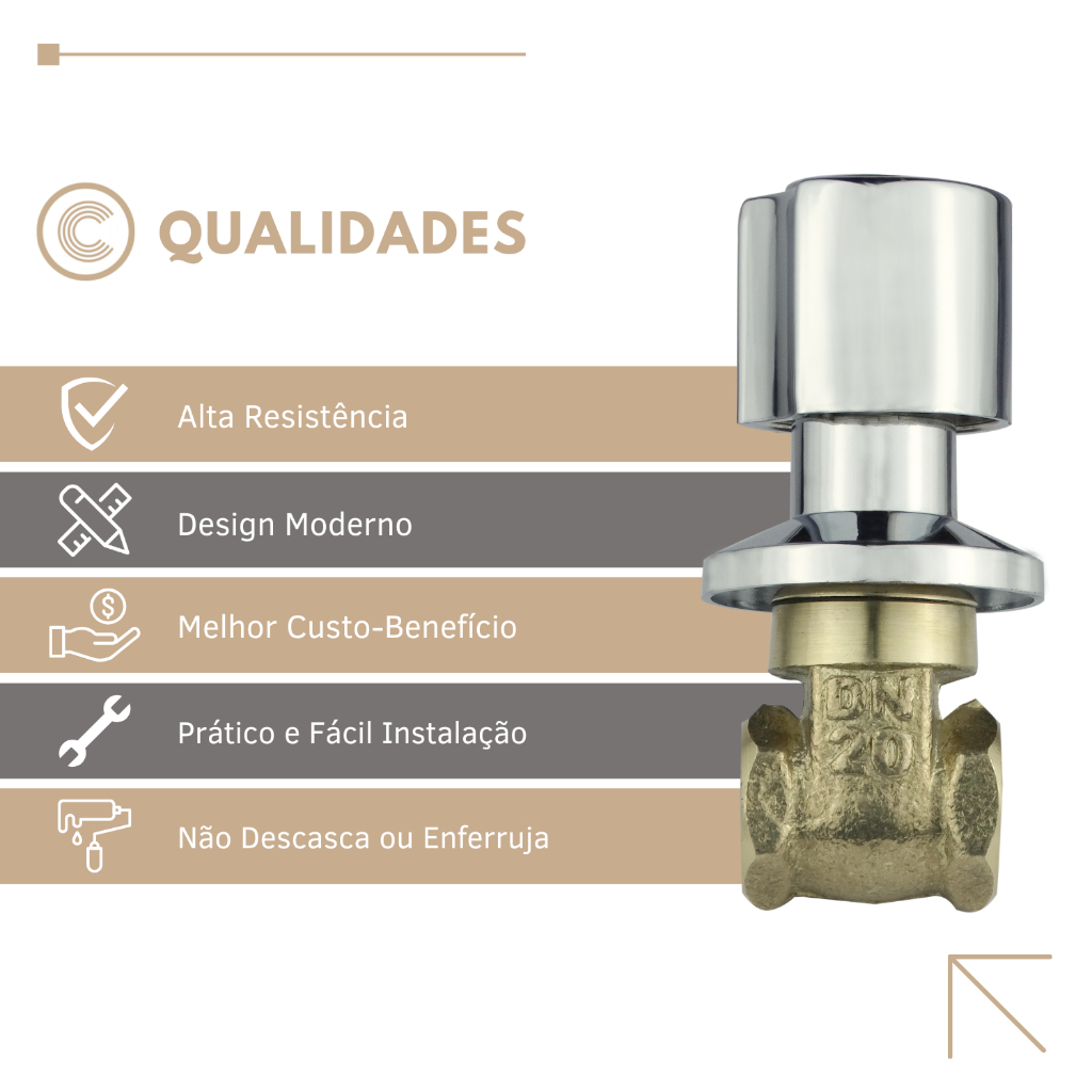 Registro De Gaveta Para Banheiro Cozinha 1509 3/4 Metal C-40 Cromado De Parede Geral