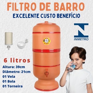 Filtro de Barro Premium 06 Litros Reforçado c/ Torneira, Bóia e Vela Tripla Ação Esterelizante