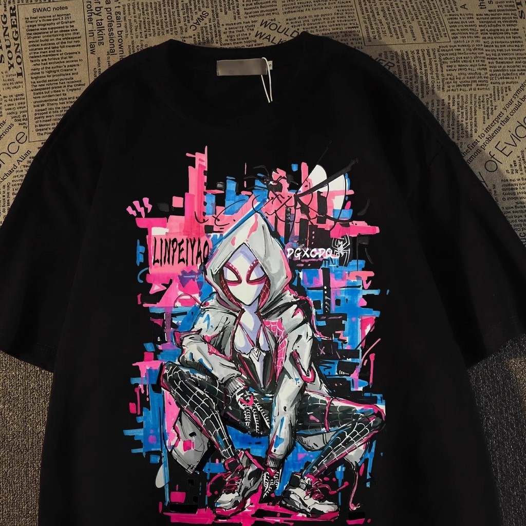 BEAST FASHION unissex oversized Camiseta Anime Aranha em Estilo Desenho Sketch e Grafites Preto Camisa