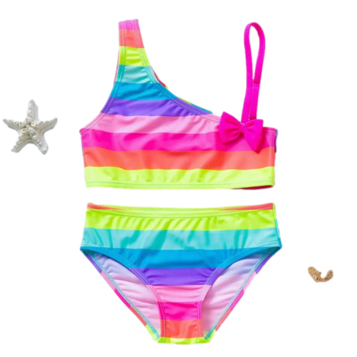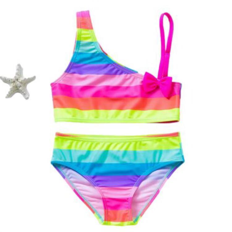 Biquíni Maiô Colorido Rosa Azul Amarelo Laço Infantil Meninas Verão Praia Piscina