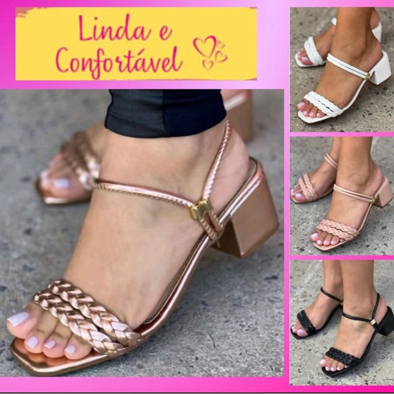 Sandália Salto Feminina Stillus Salto Tiras Trançadas Tamanco salto médio Palmilha Confort 2025