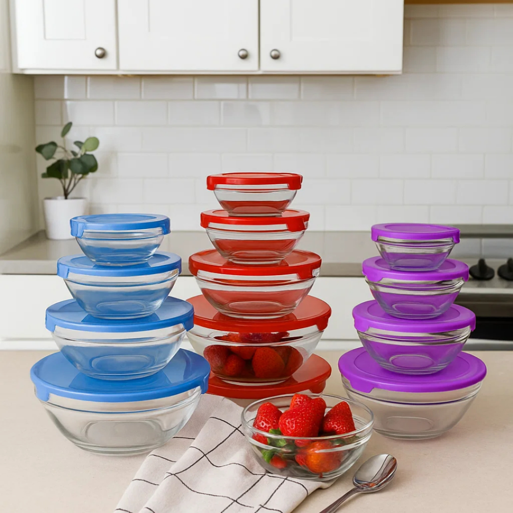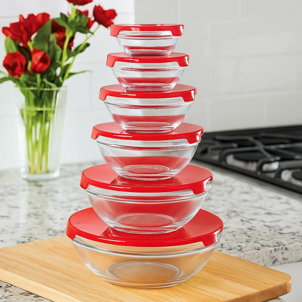 Conjunto 5 Potes de Vidro Hermeticos com Tampa Armazenamento de Alimentos Forno Microondas Marmita