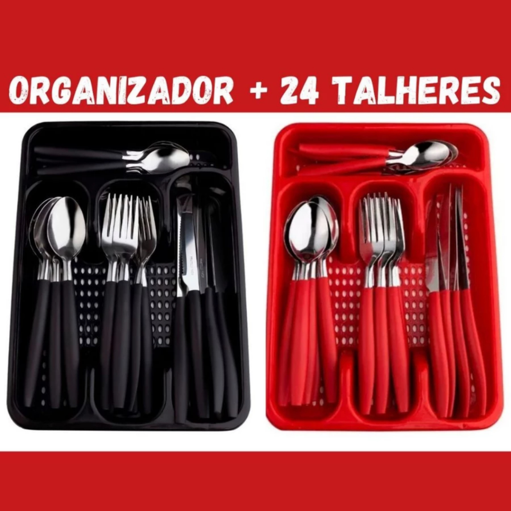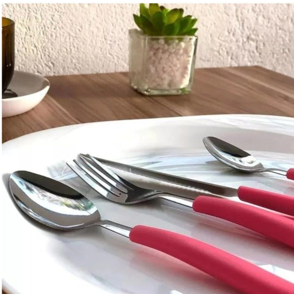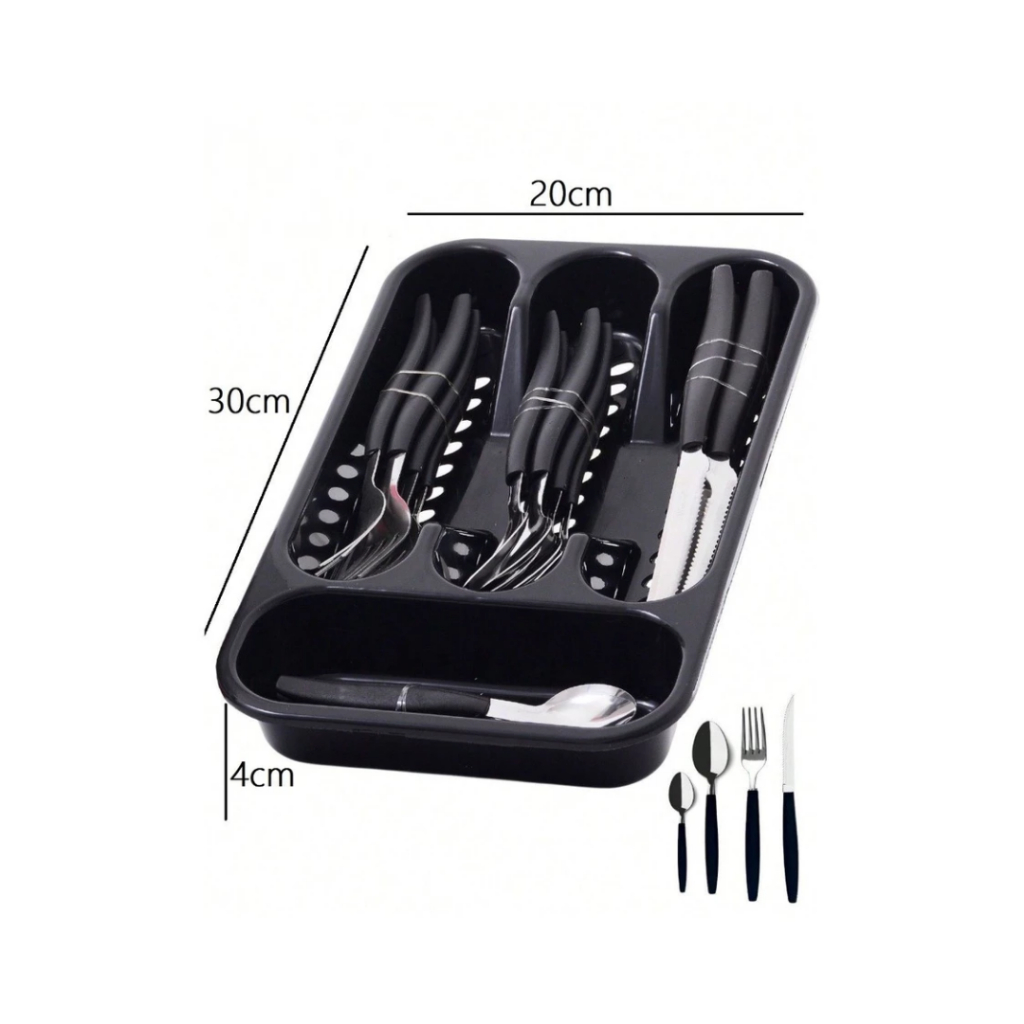 Jogo De Talheres 25 Peças Cabo de Plástico Inox Conjunto Faqueiro Com Porta Garfos Colheres e Facas