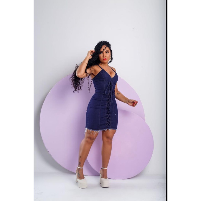Vestido Jeans Com Lycra Elegância em Moda