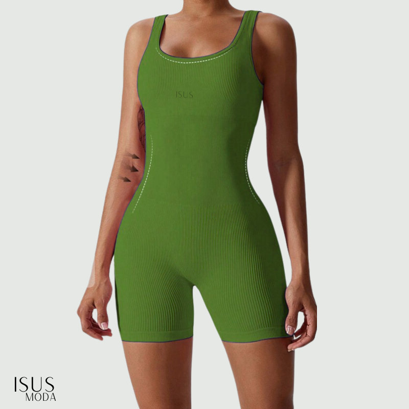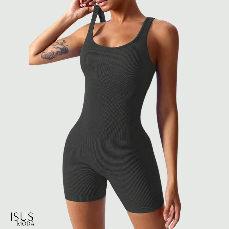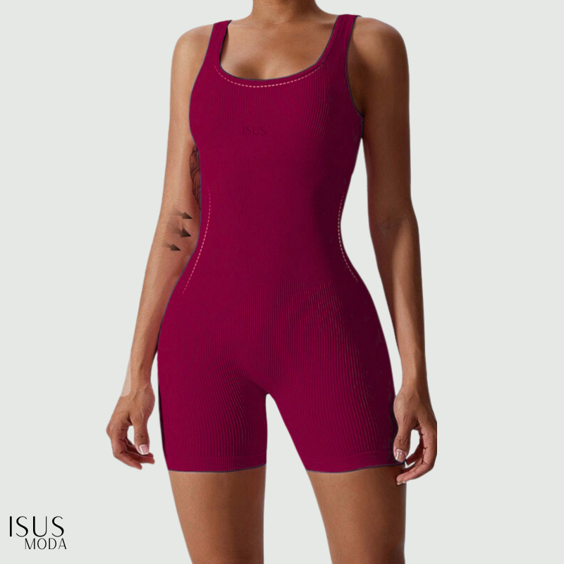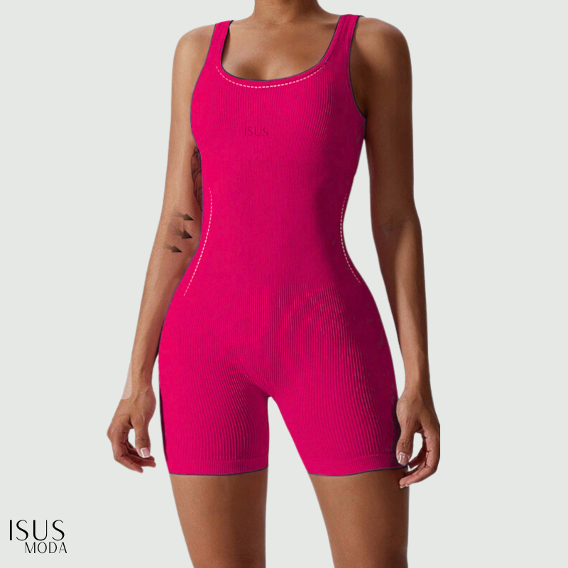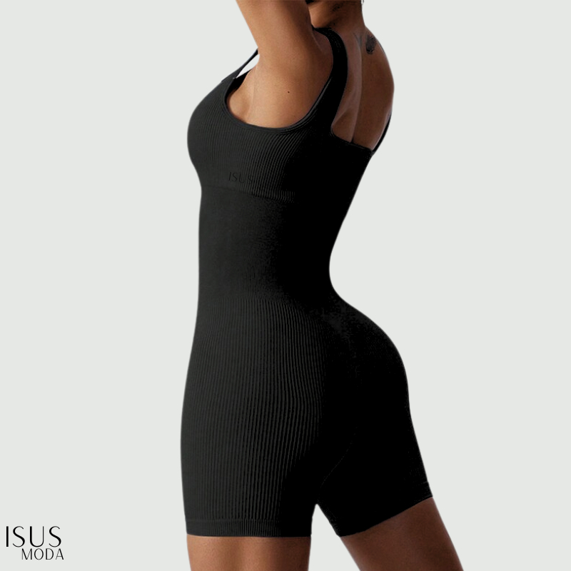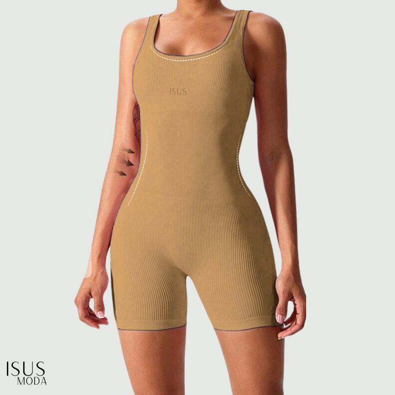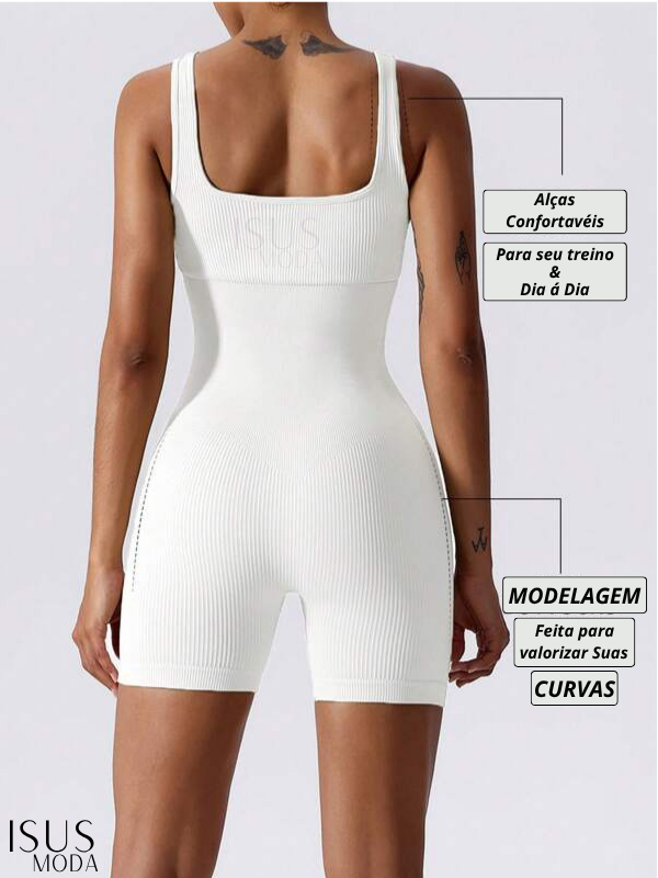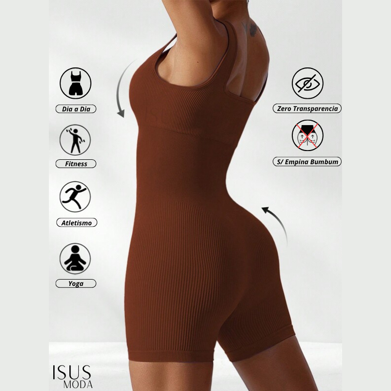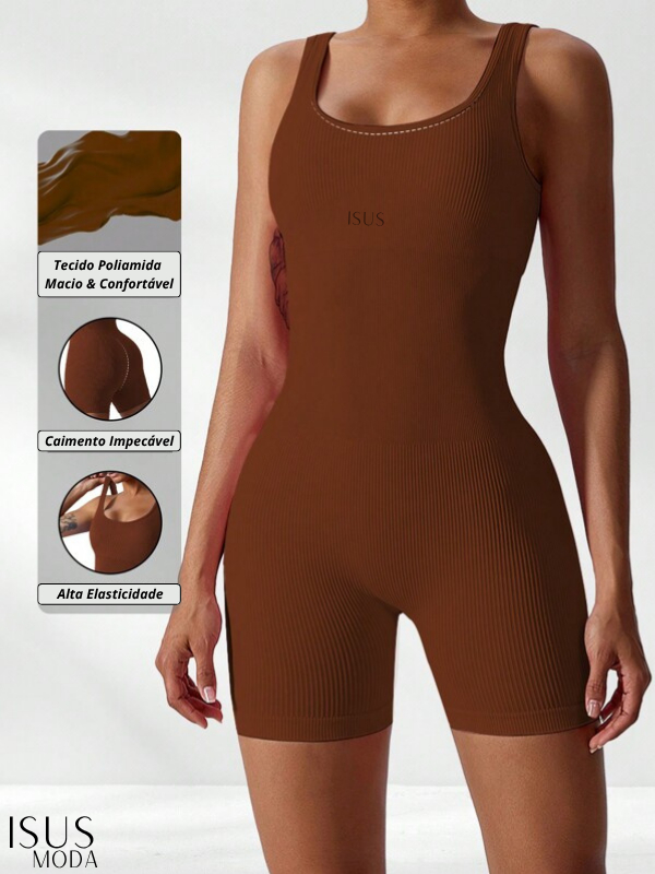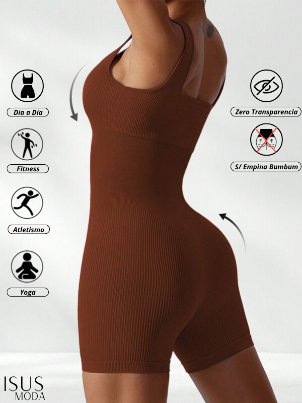 Macacão Canelada de Cintura Alta Macaquinho Poliamida Sem Costura para Academia Feminina, Elástica e Fitness Trendy Tie