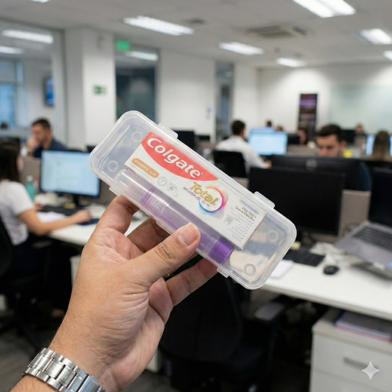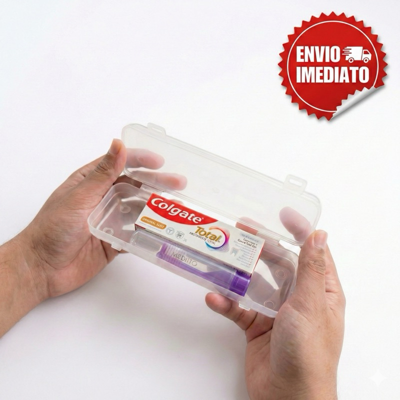 Kit Viagem Escova Dental Portátil + Pasta Colgate 30g + Estojo Organizador Prático Trabalho Viagem