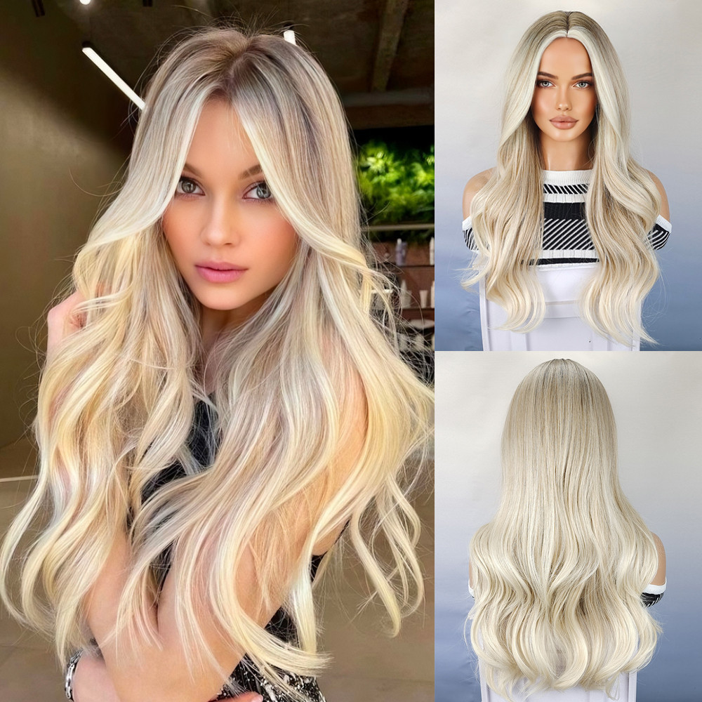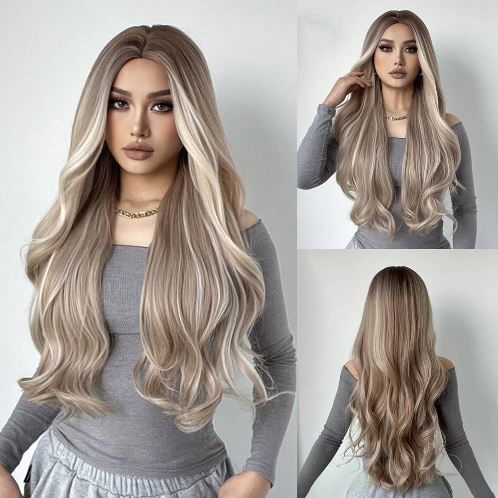 Sensação natural , Peruca De Pelúcia Elegante Loira A Cinza Com Pôneis Para Cachos Sintéticos Resistentes Ao Calor Femin