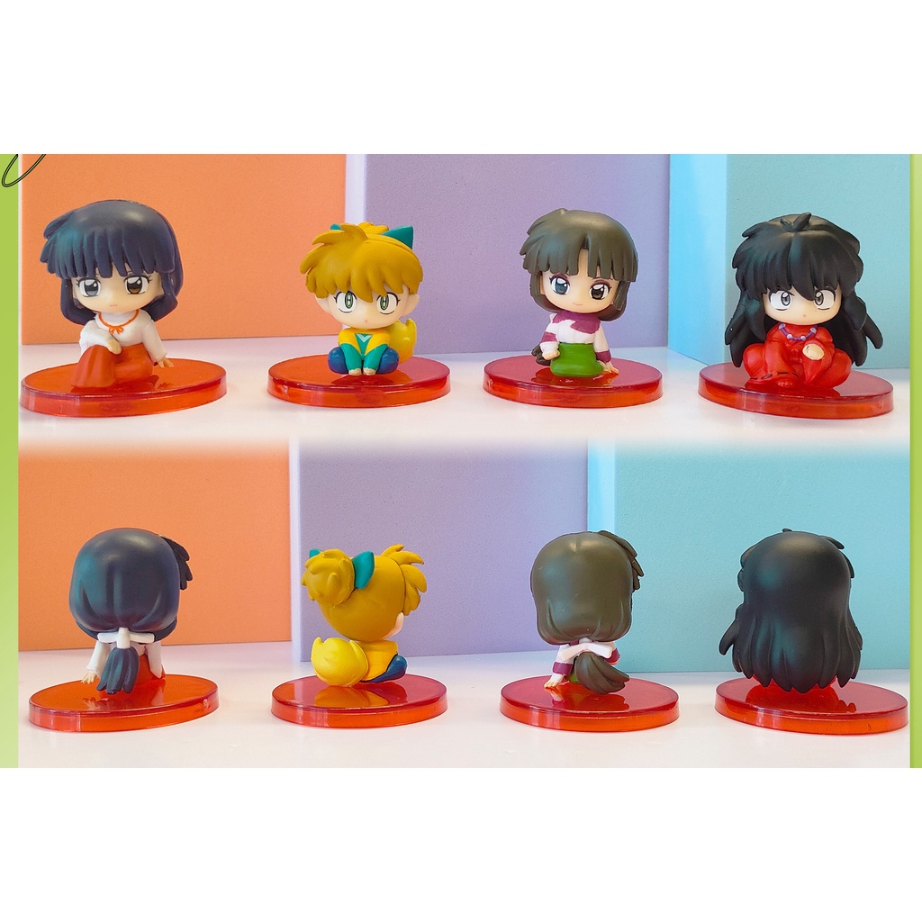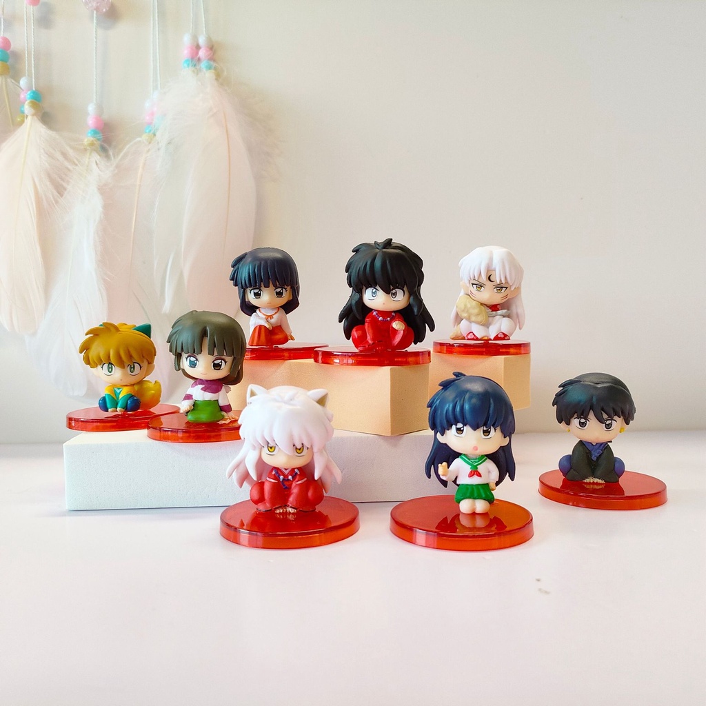 8pcs 4,5cm Q Versão Inuyasha Postura Série Boneca Sentada Kikyo Sesshoumaru Miroku Figura Modelo De Coleção De Estátua Em PVC Brinquedo Para Aniversário De Cápsula