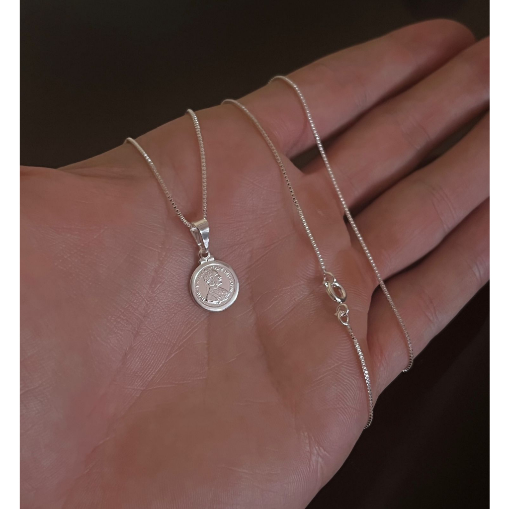 Corrente Cordão Veneziana Prata 925 + Pingente Moeda Austríaca Folheada