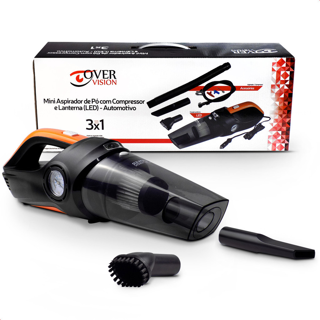 Aspirador de Pó com Mini Compressor 12v 3 em 1 Laranja