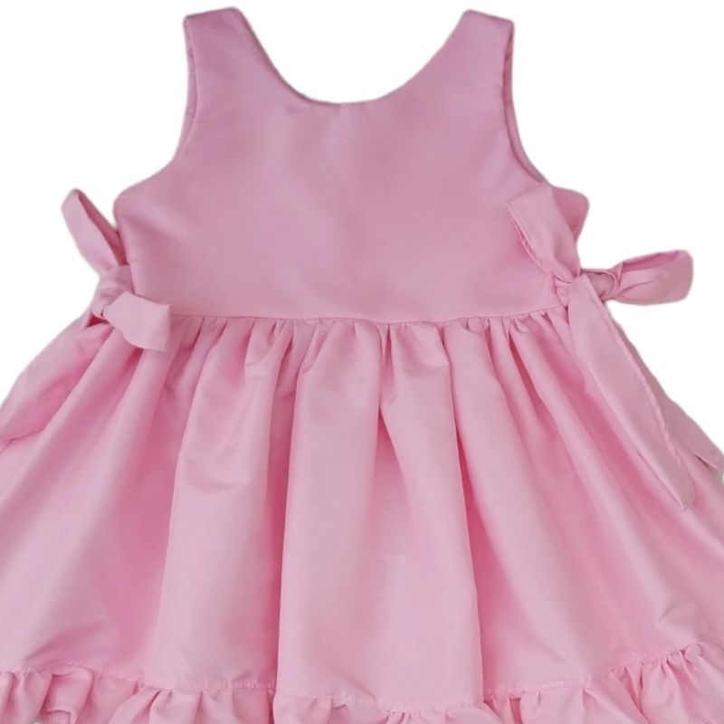 Vestido Infantil Menina Luxo Rosa 100% Algodão Laura - Tam. P ao 3 anos | Diversas Cores