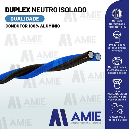 Fio Cabo Alumínio Multiplex Duplex Isolado 16mm 60 Metros