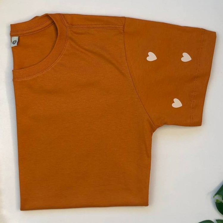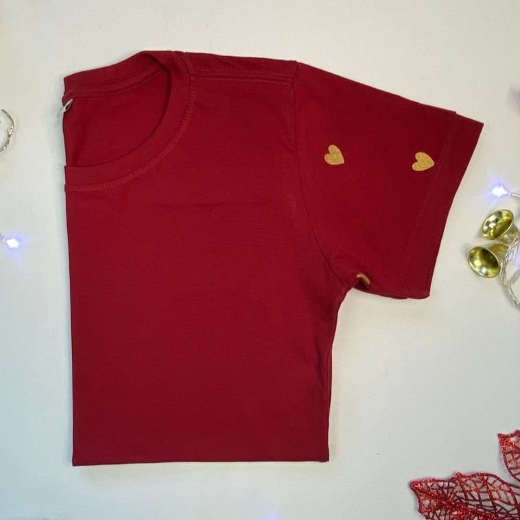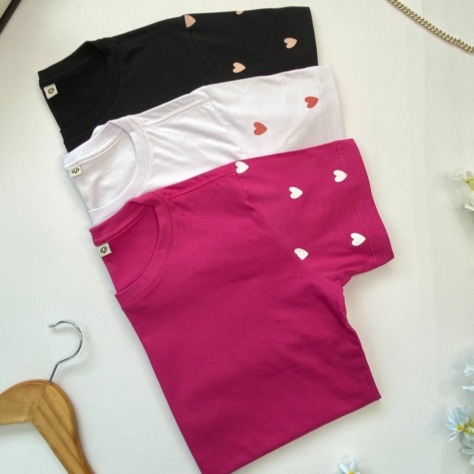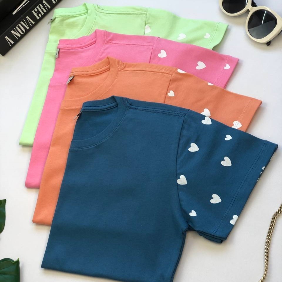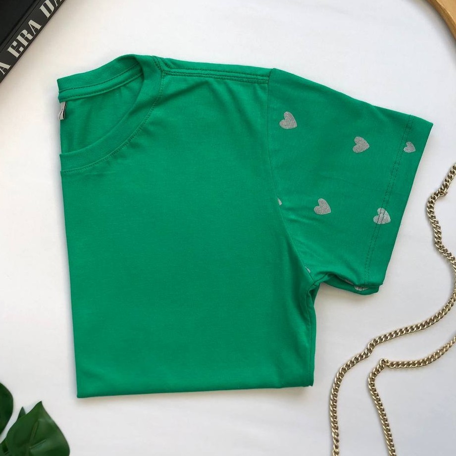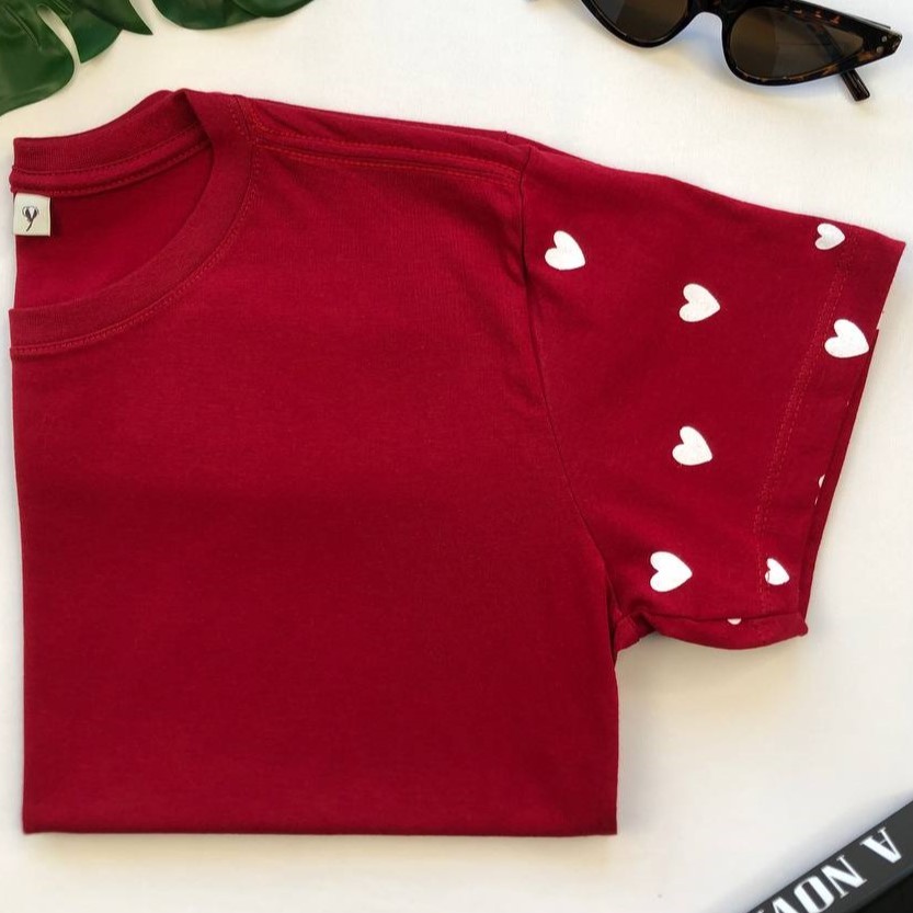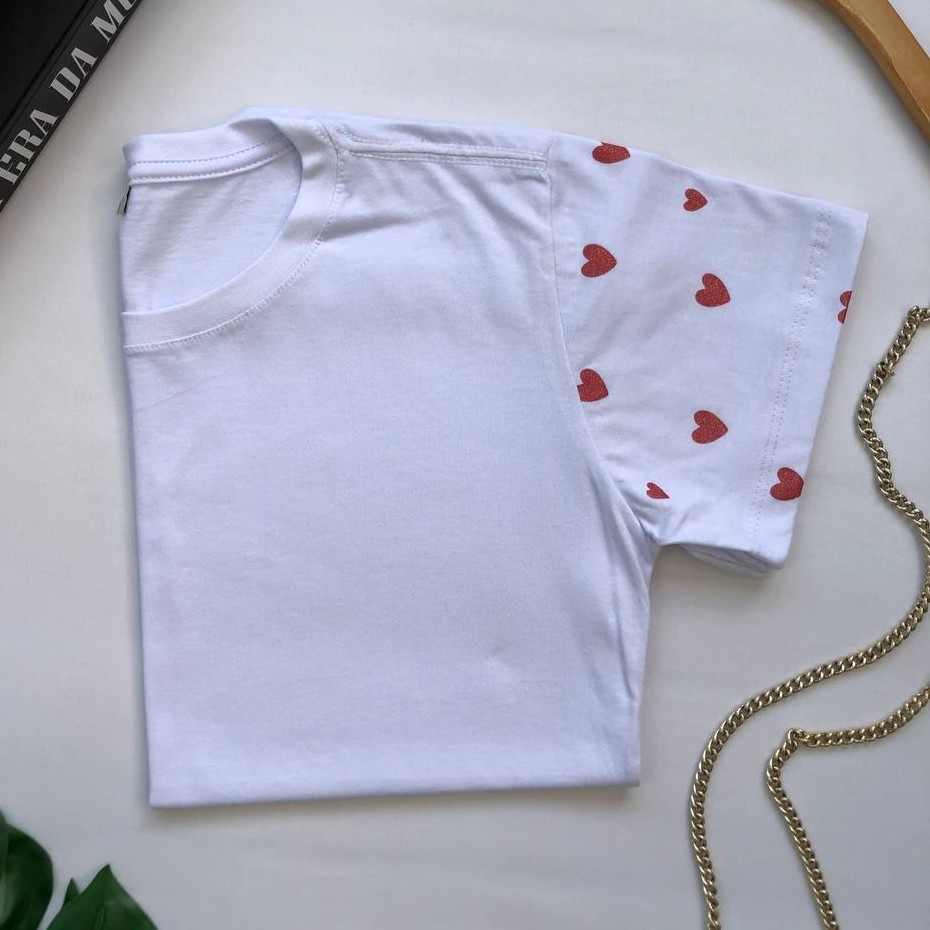 Blusa T shirt Feminina Plus Size Algodão Corações na Manga - Tam G1 e Tam G2