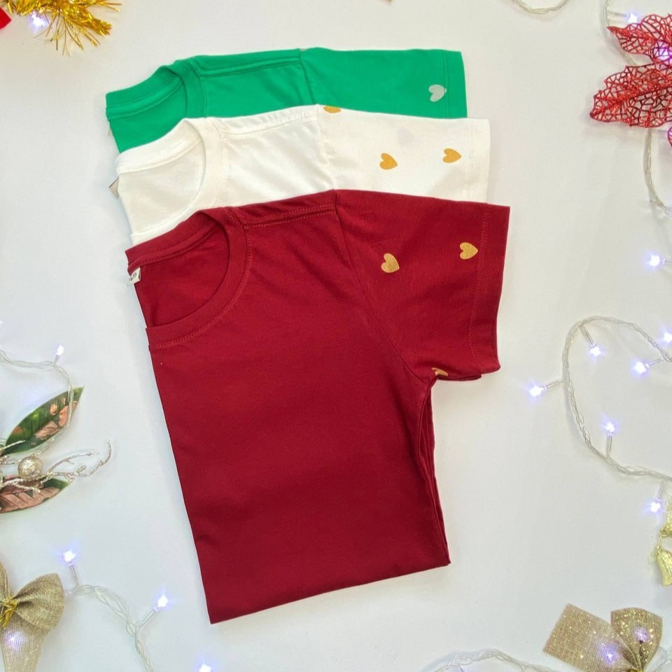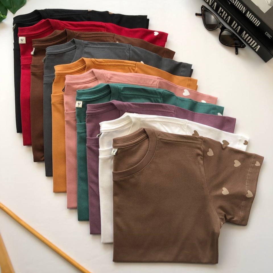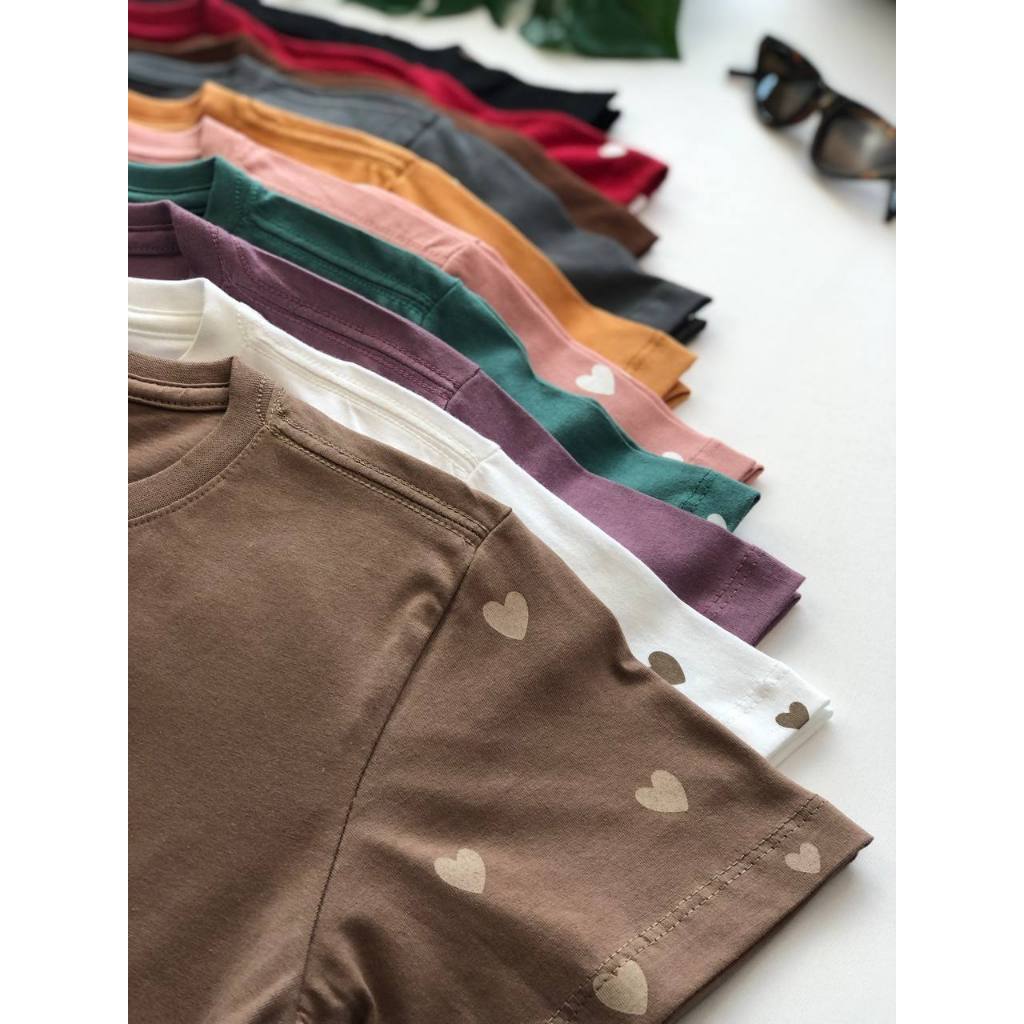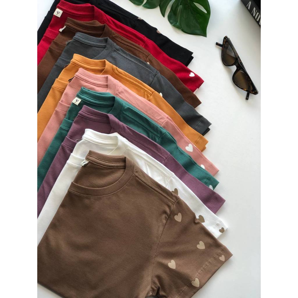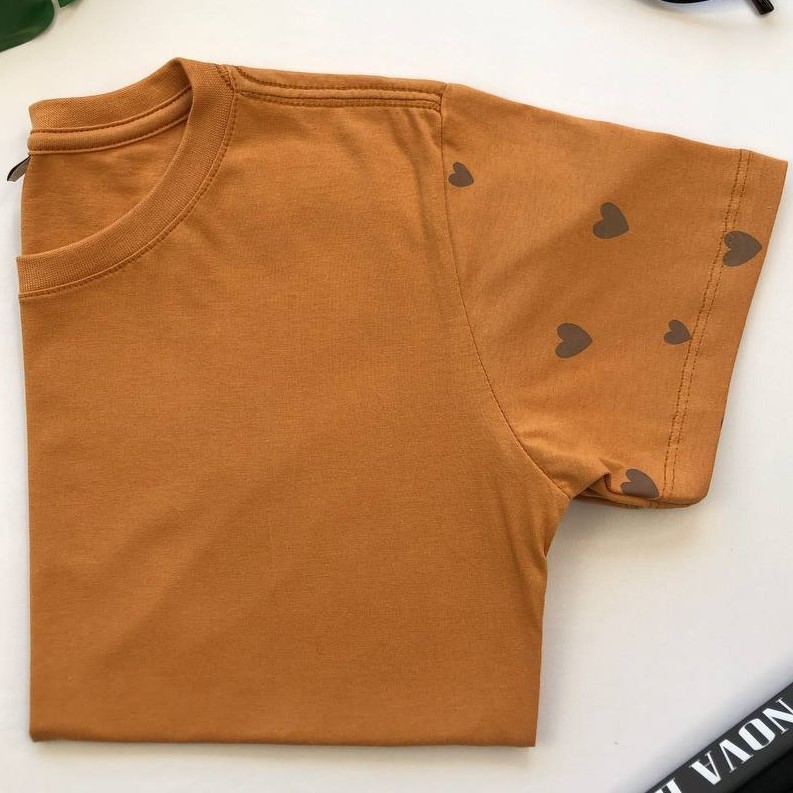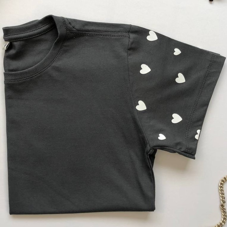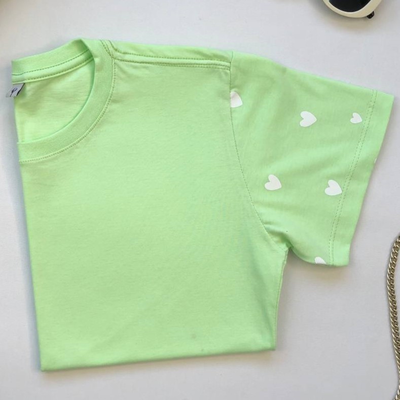 Blusa T shirt Feminina Plus Size Algodão Corações na Manga - Tam G1 e Tam G2
