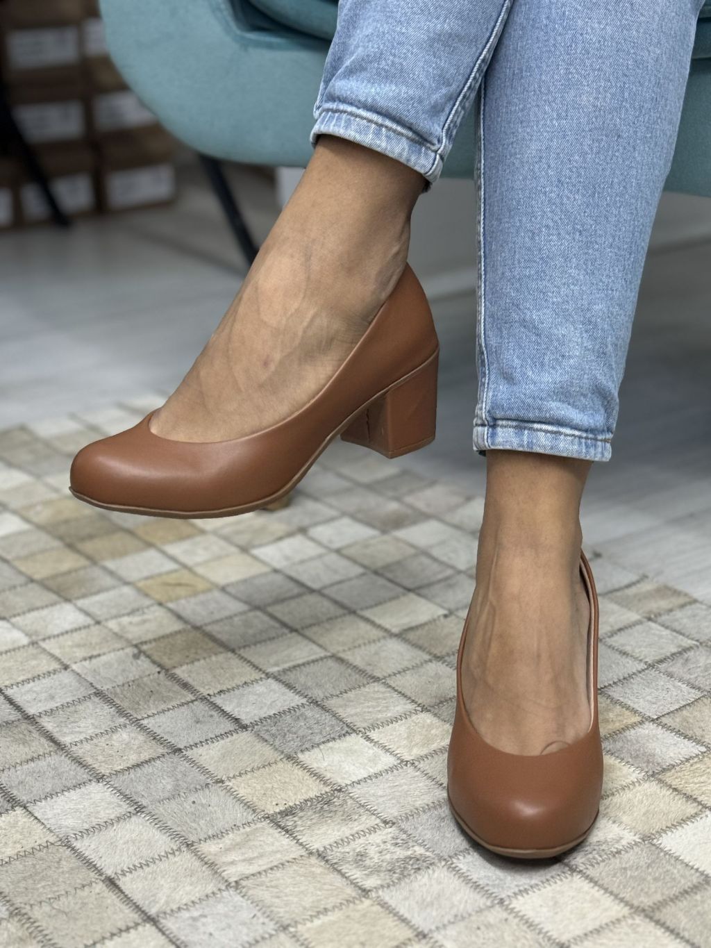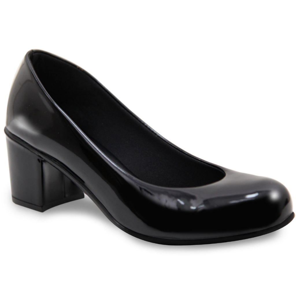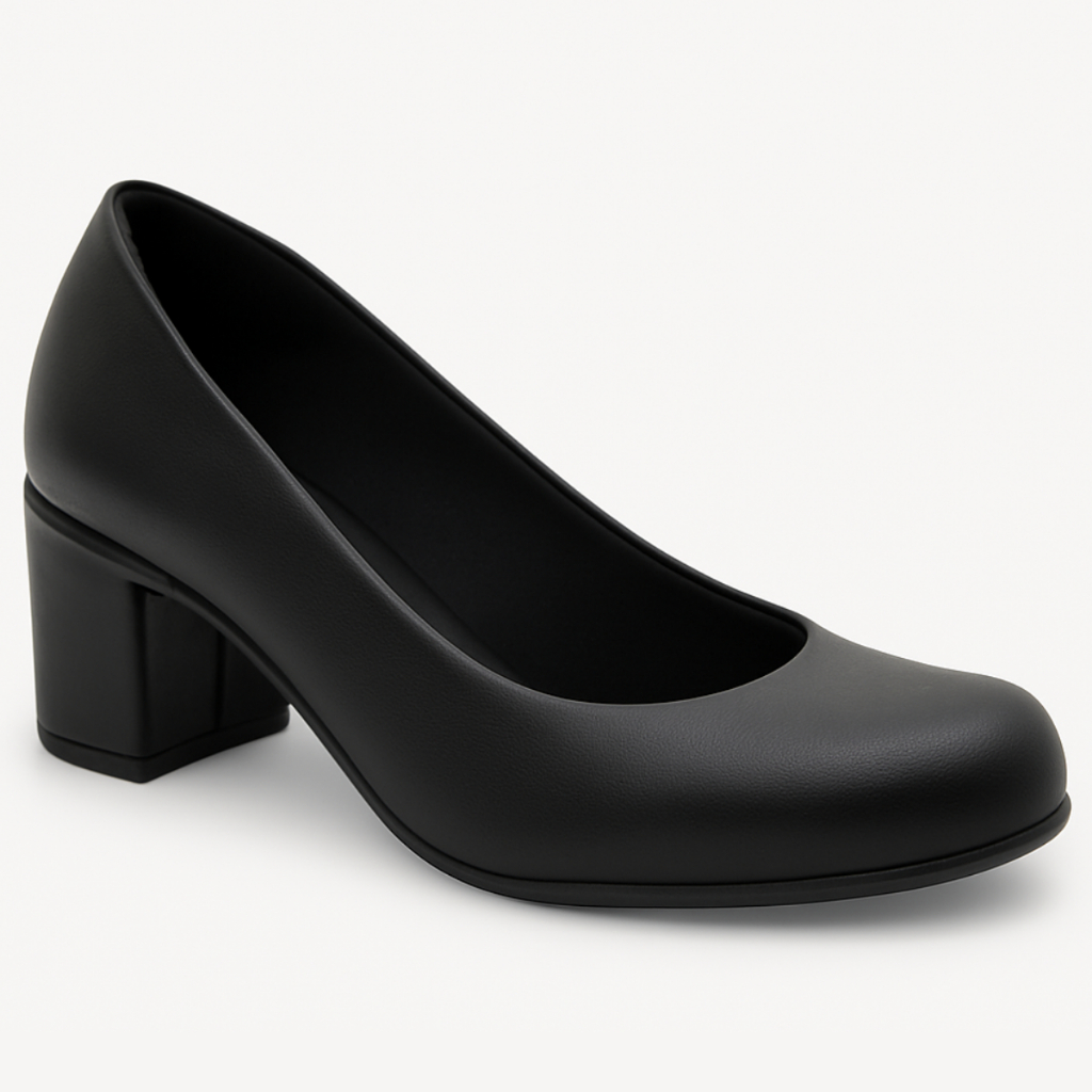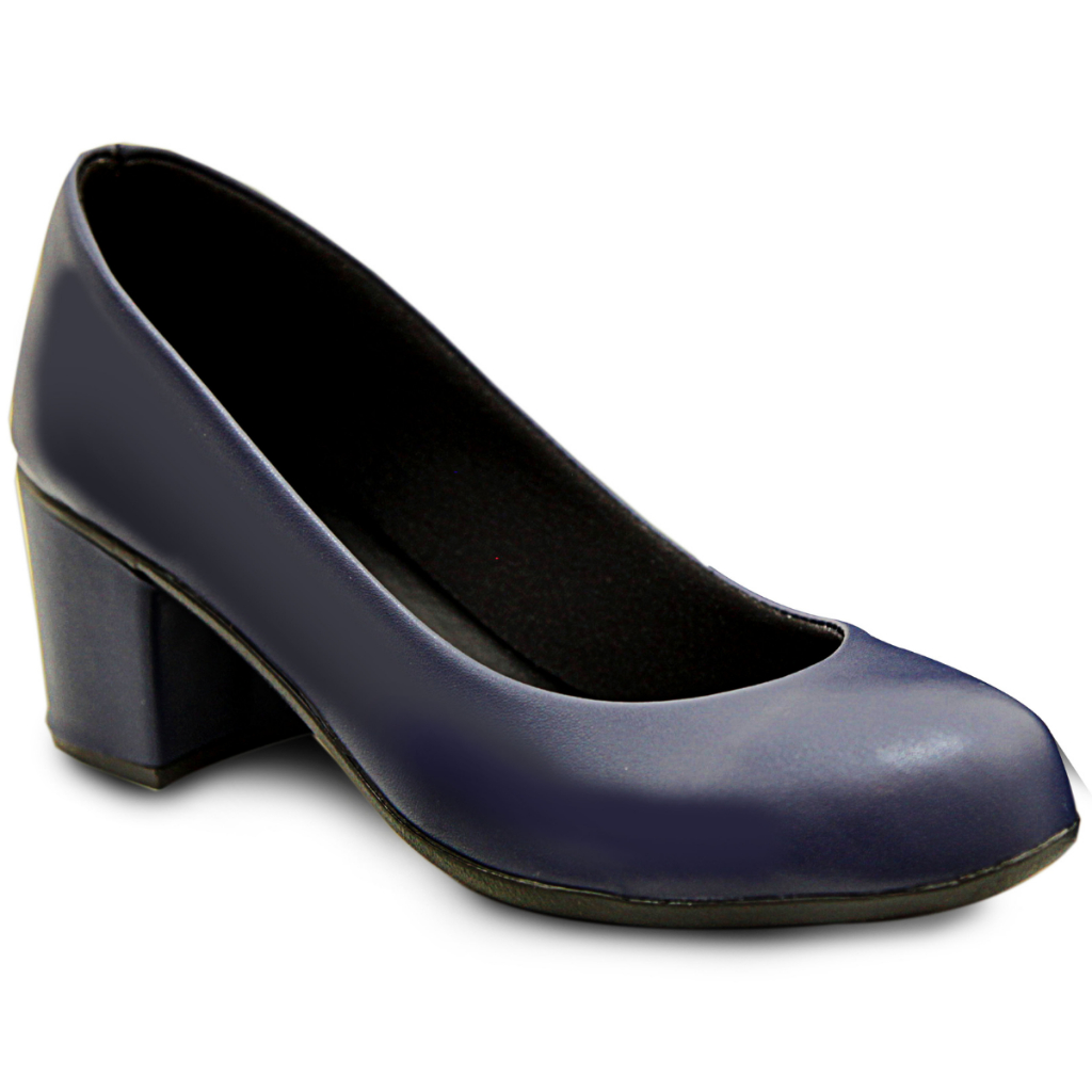 Salto Social Scarpin Fechado confortável Sapato Salto Baixo quadrado Elegante para escritório e trabalho Bico redondo