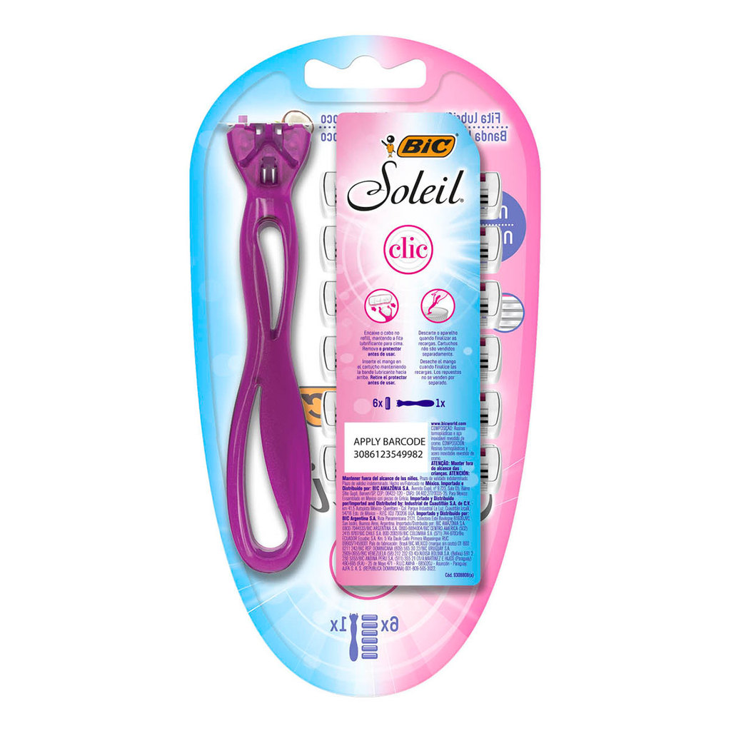 Barbeador descartável Soleil Clic recarregável Rosa + 6 lâminas Bic
