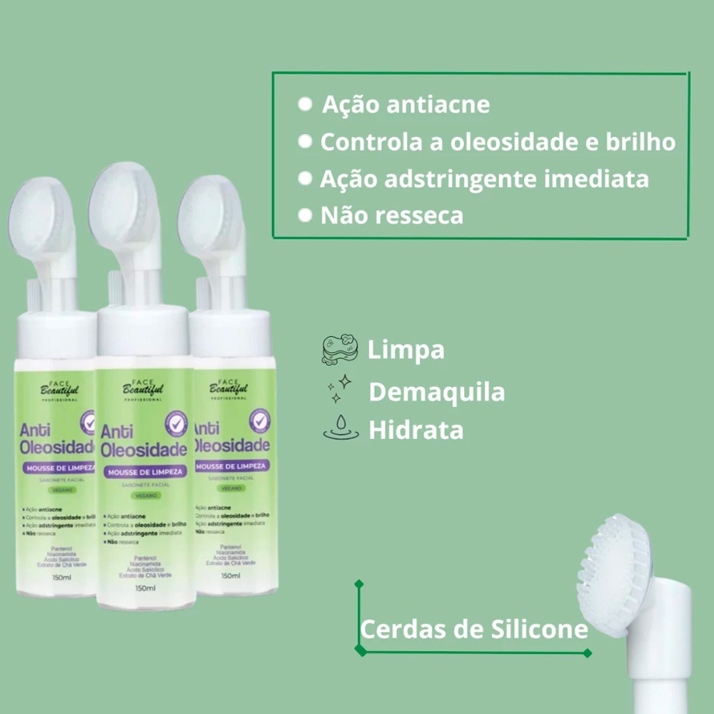 Mousse Facial Antioleosidade de Limpeza com Aplicador Face Beautiful 150ml