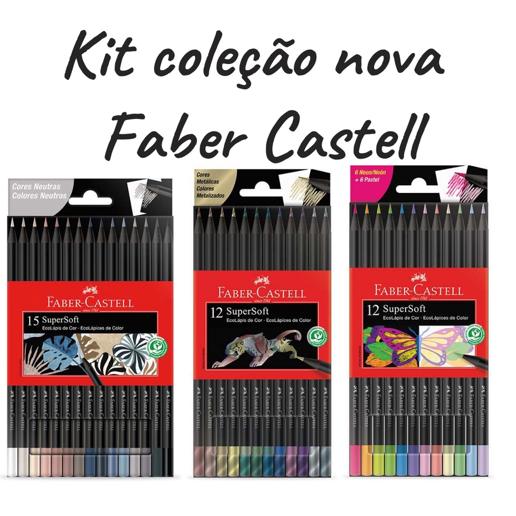 Kit lápis de cor SUPERSOFT da Faber Castell Metálicos, Neon, Pastel e Cores neutras