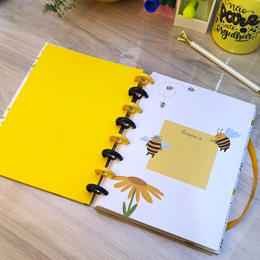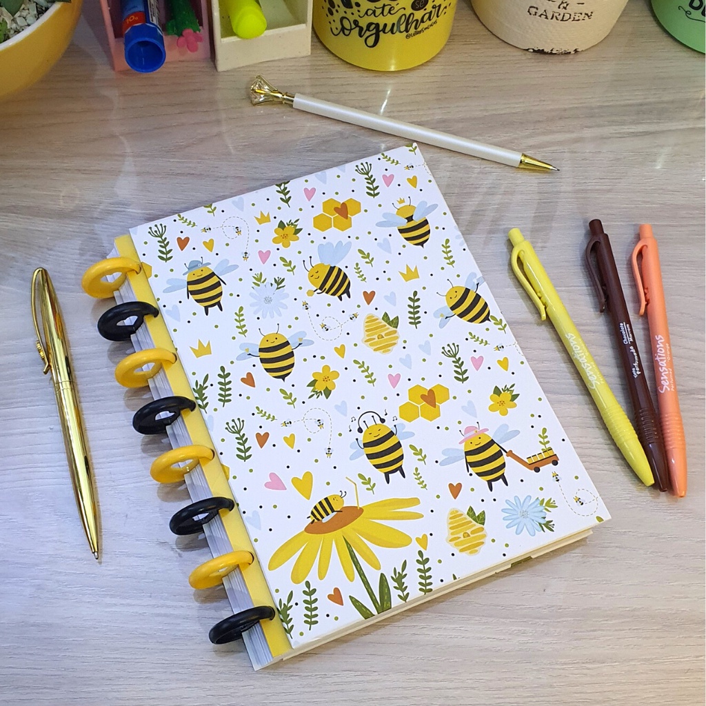Caderno de Disco Tamanho A5 Abelhas com 8 furos