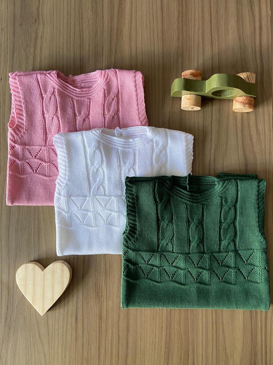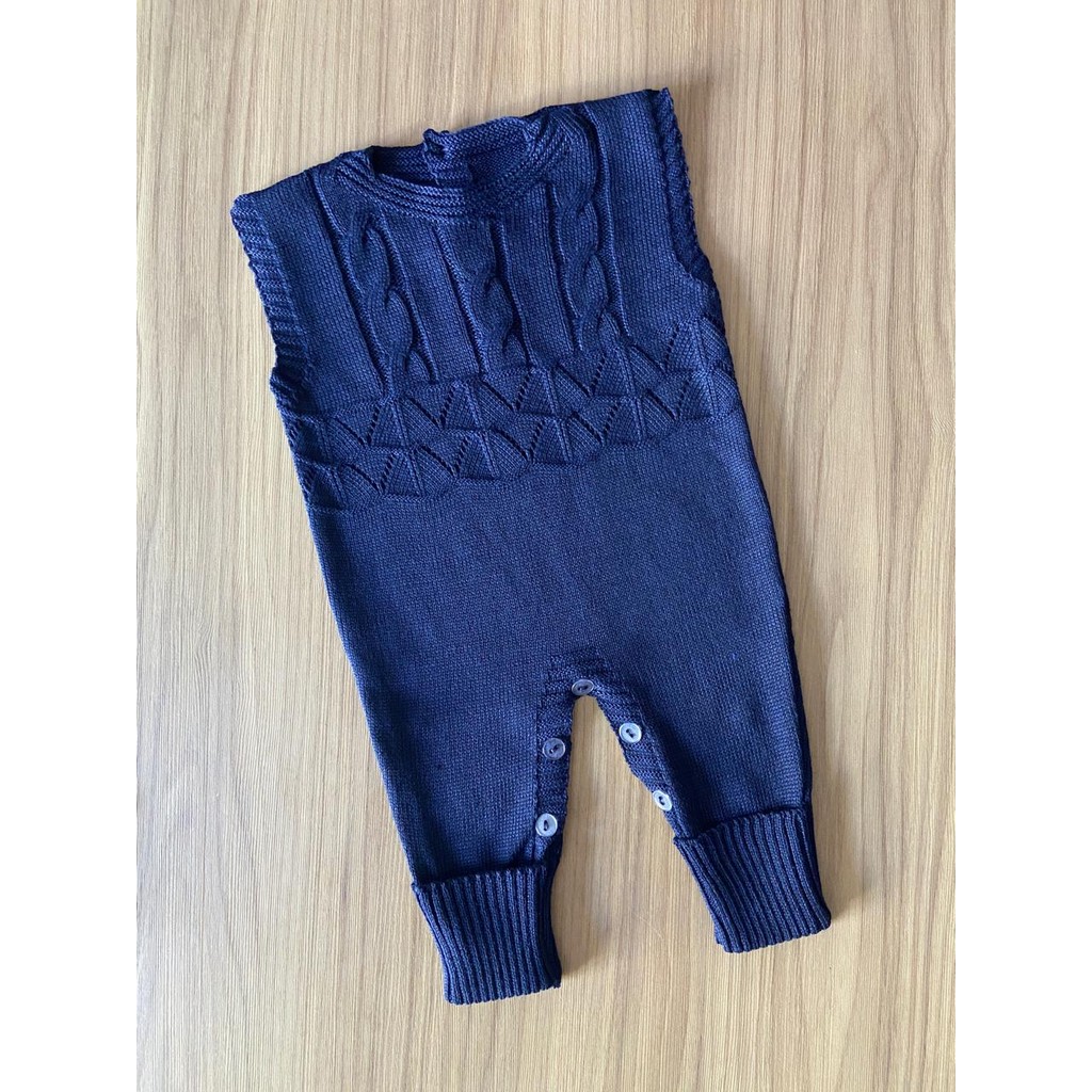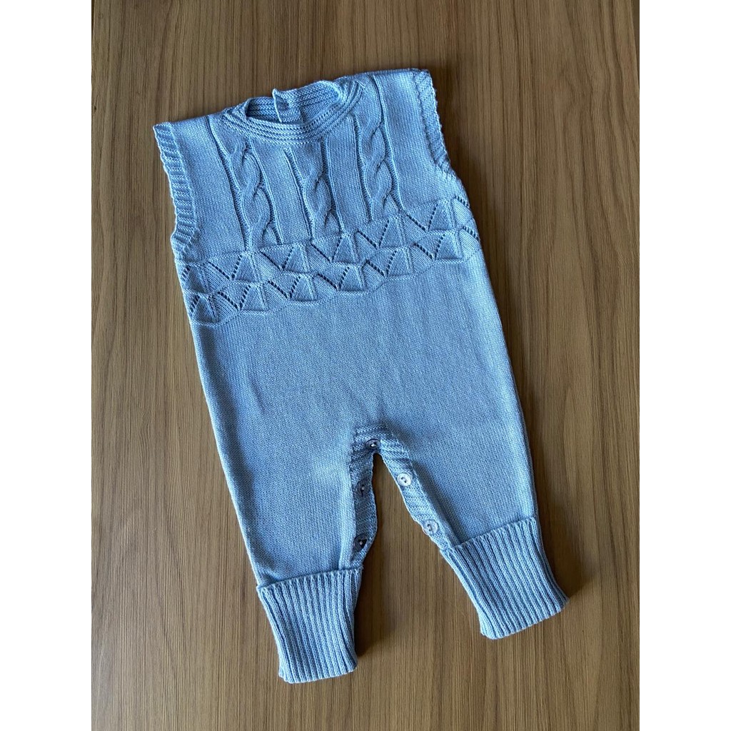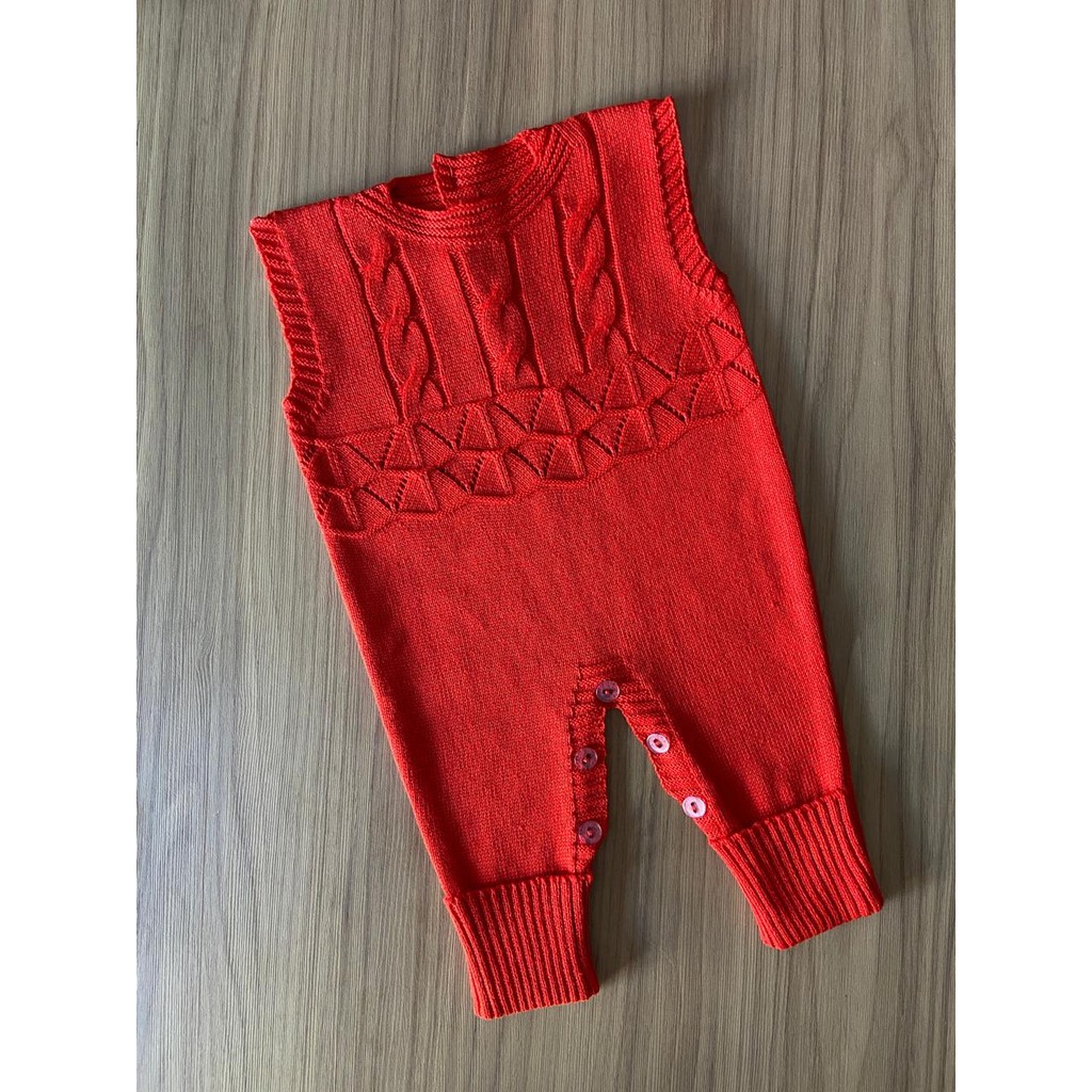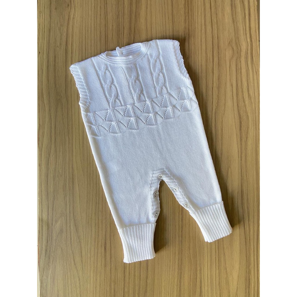 Macacão Regata Trança RN Menino Menina Récem Nascido Tricô Bebê