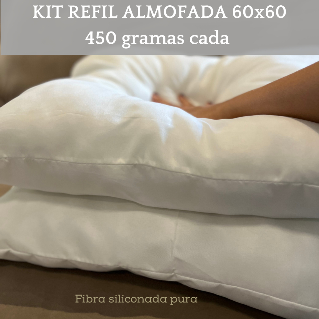Kit Enchimento almofada refil 60x60cm feita de TECIDO e fibra siliconada pura - Macia