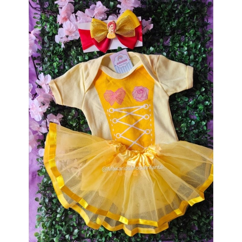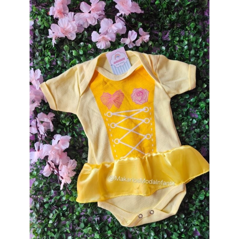 Body Temático Bela e a Fera Mesversario Bory Bori Bory Bodi Fantasia Princesas Filme Bela e a Fera