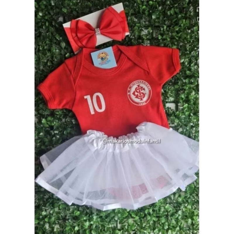Body Tematico Bebe Do Time Internacional Mesversario Bory Bori Bory Bodi Fantasia Bebe Body Inter com Saia Meninas
