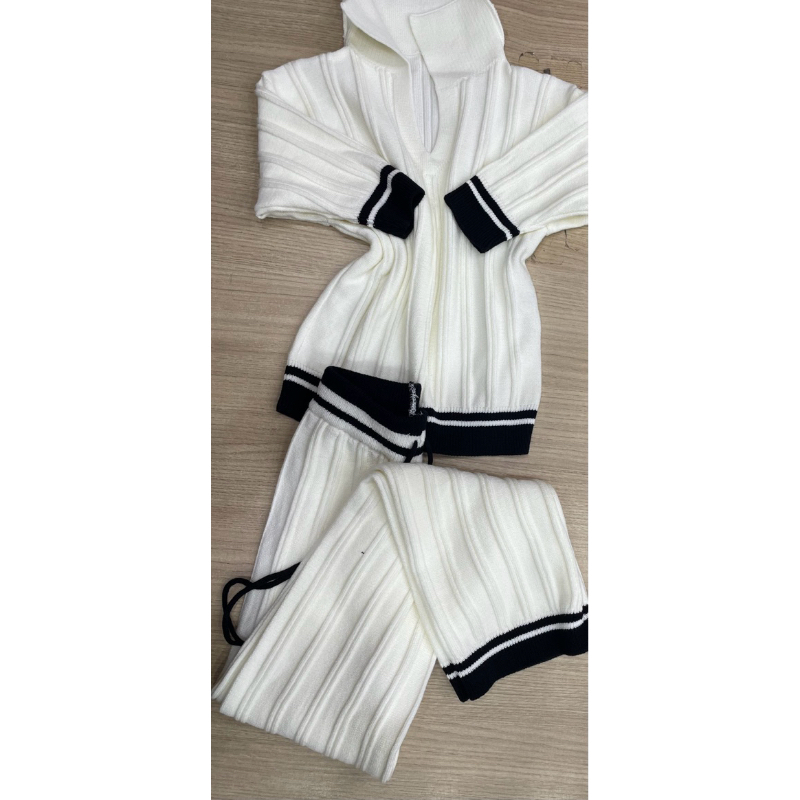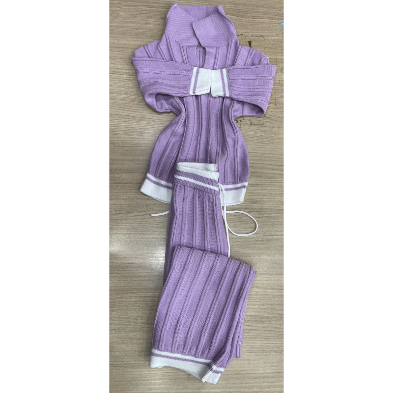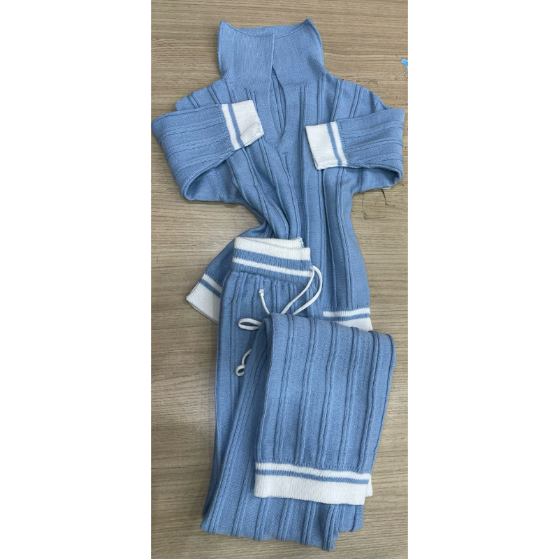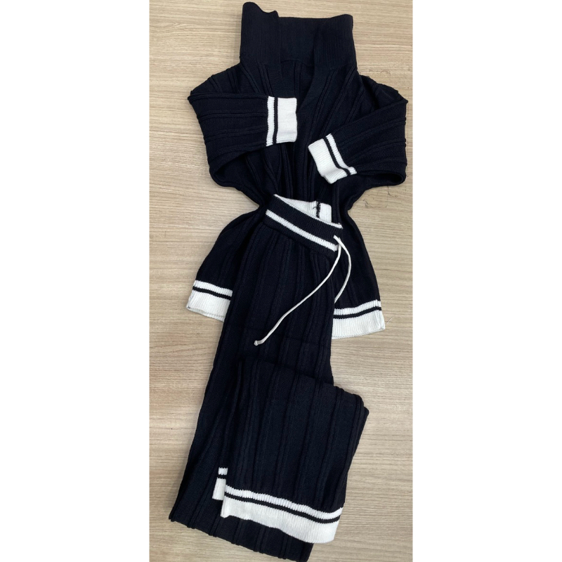Conjunto tricot modal com calça wide leg e blusa gola polo meio manga (CS2)