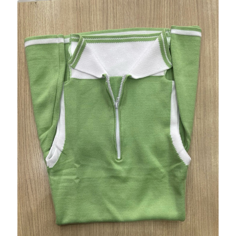 vestido tricô modal elegante vestido curdo regada gola polo Blocos de cor(VC10)