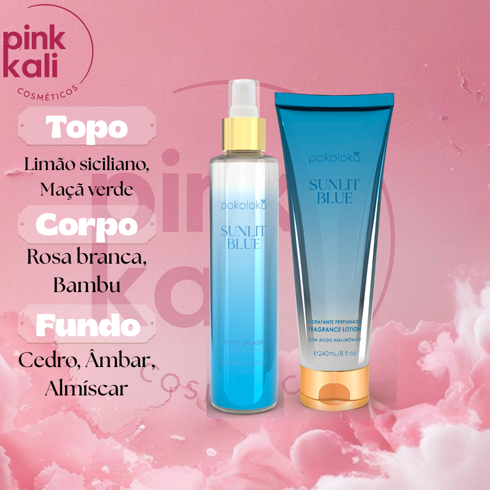 SUNLIT BLUE - POKOLOKA - (Body Splash - Hidratante) CREME CORPORAL PERFUMADO POS BANHO VIAGEM