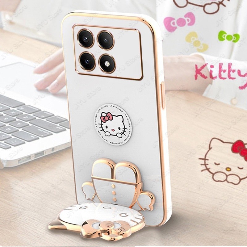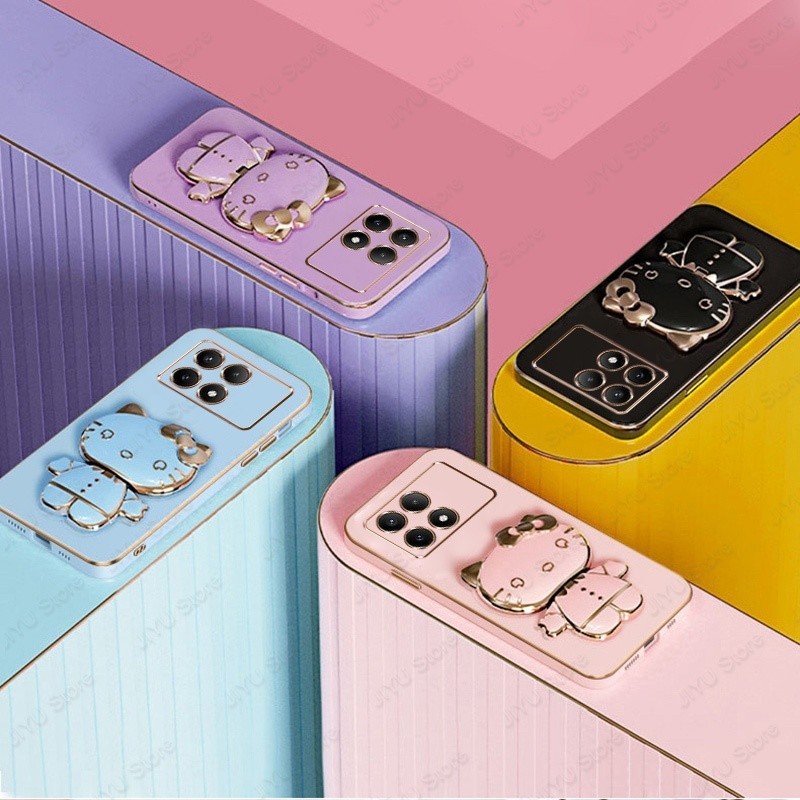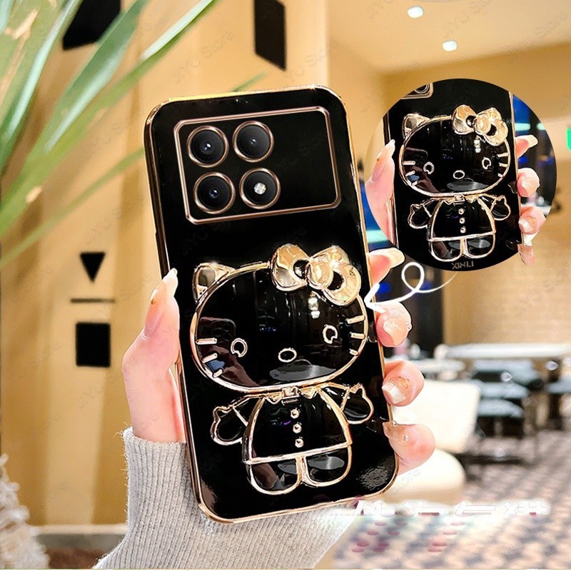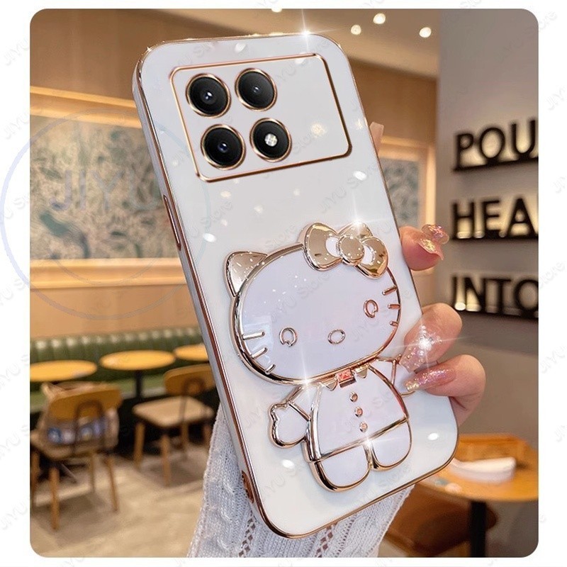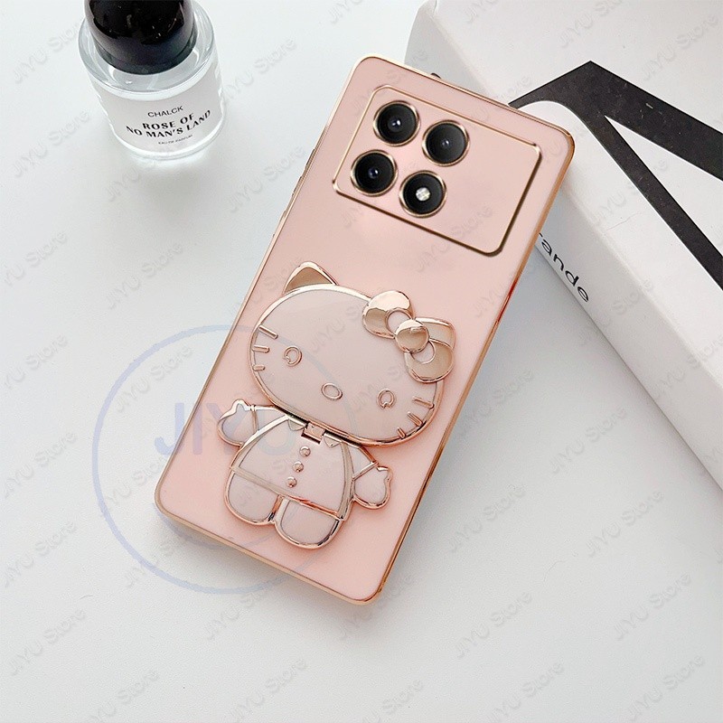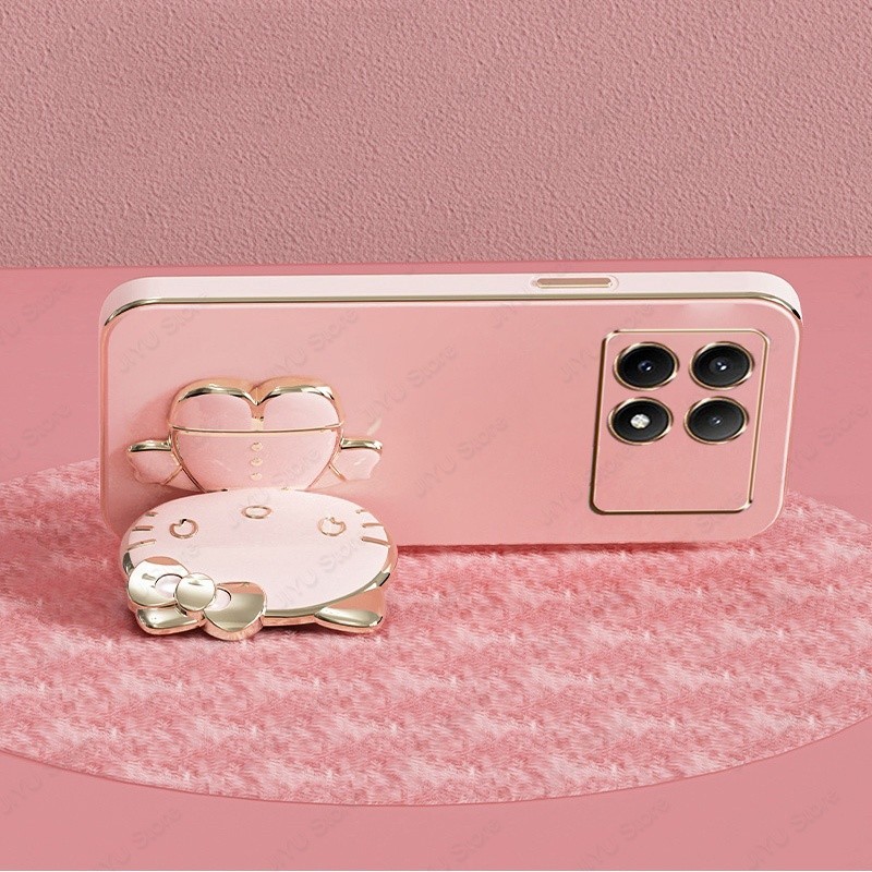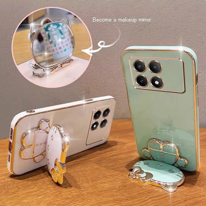 Capinha Capa Xiaomi POCO X6 Pro X6 X5 F5 Pro F4 GT Com Espelho De Maquiagem KT Cat Suporte De Telefone