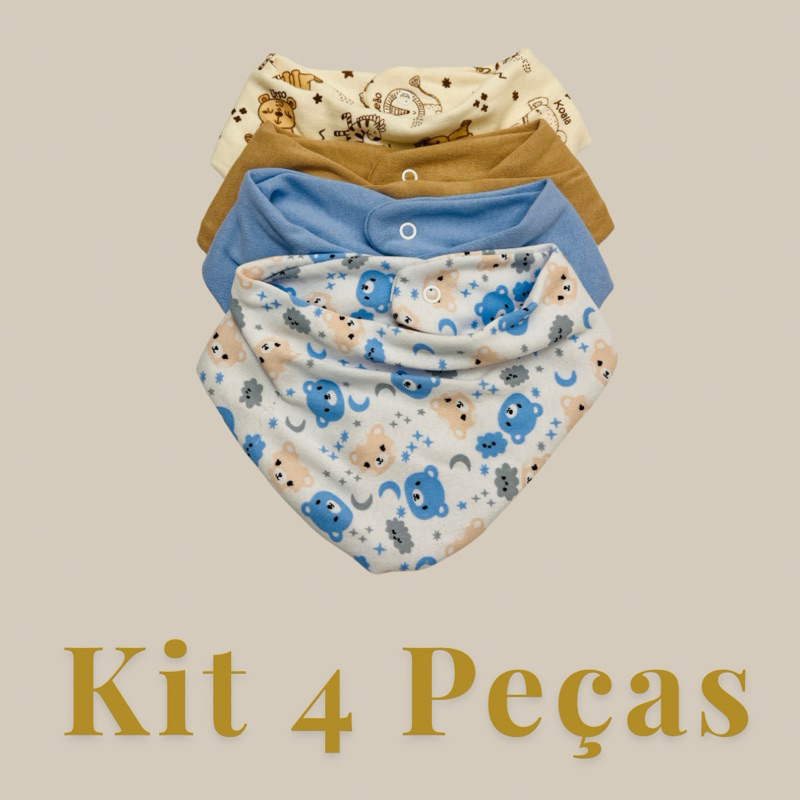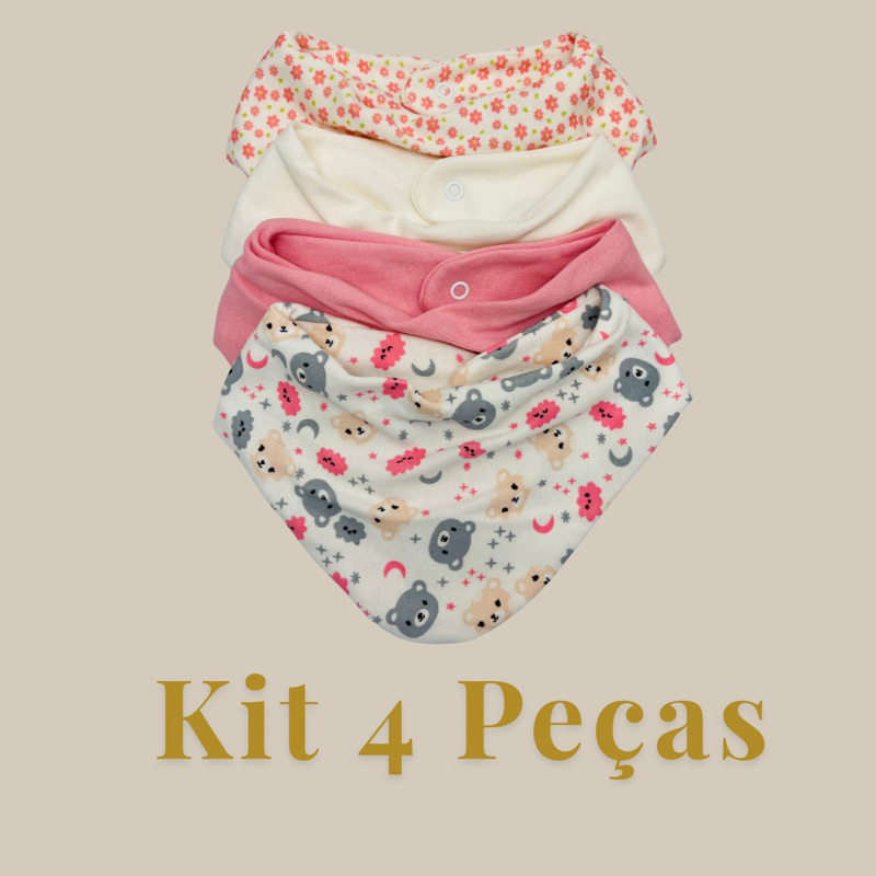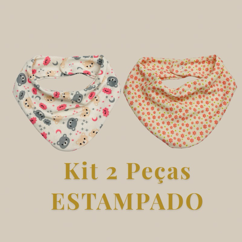 Kit com 5 Babador Bandana Bebê - Misto e Estampado Trcido Duplo Fecho de Pressão 100% Algodão