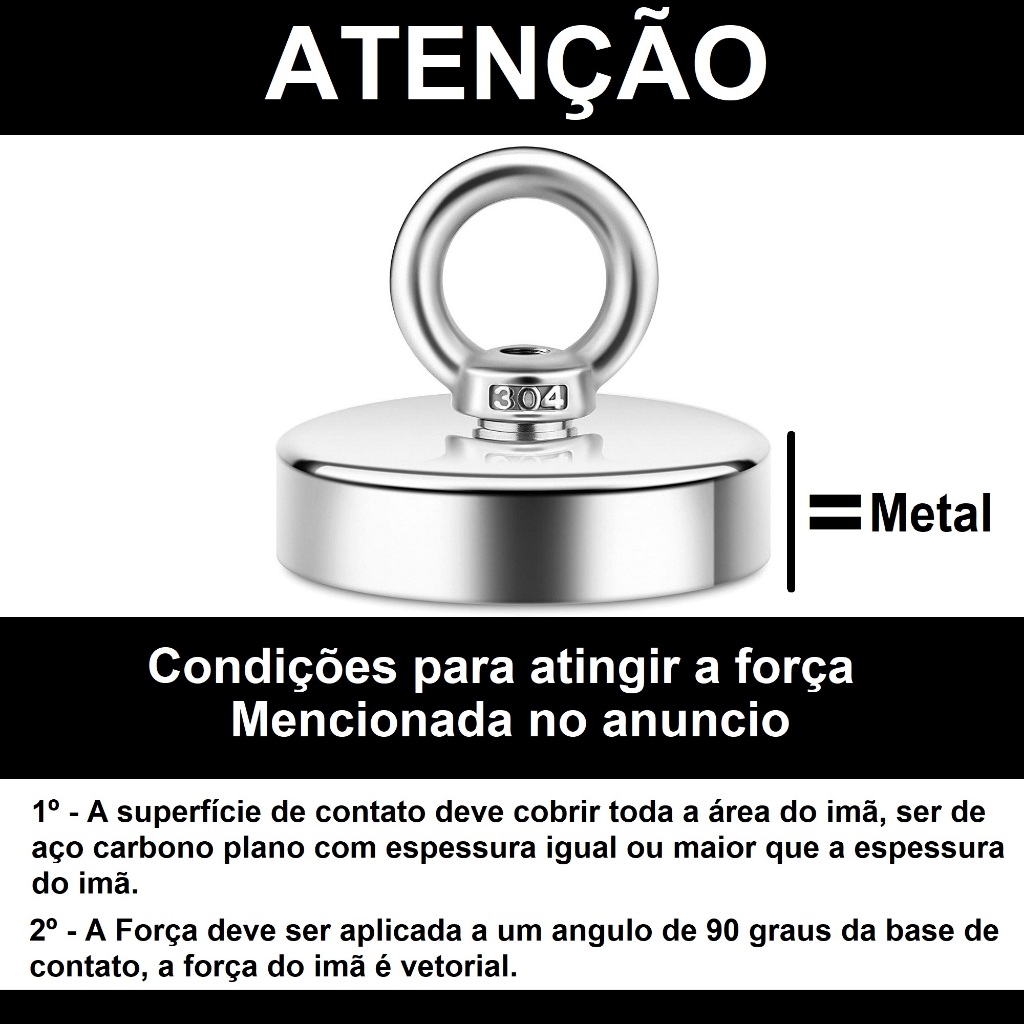 Imã de pesca magnética até 120kg imã de neodimio + Corda 10 metros