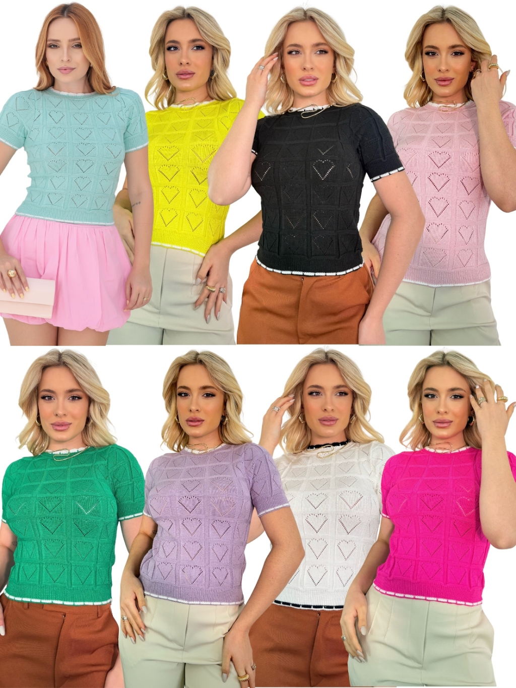 Blusas Diferentes Feminina Elegante Cropped Tricô Blusinha Tricot Feminino T Shirt Modal Verão 2025