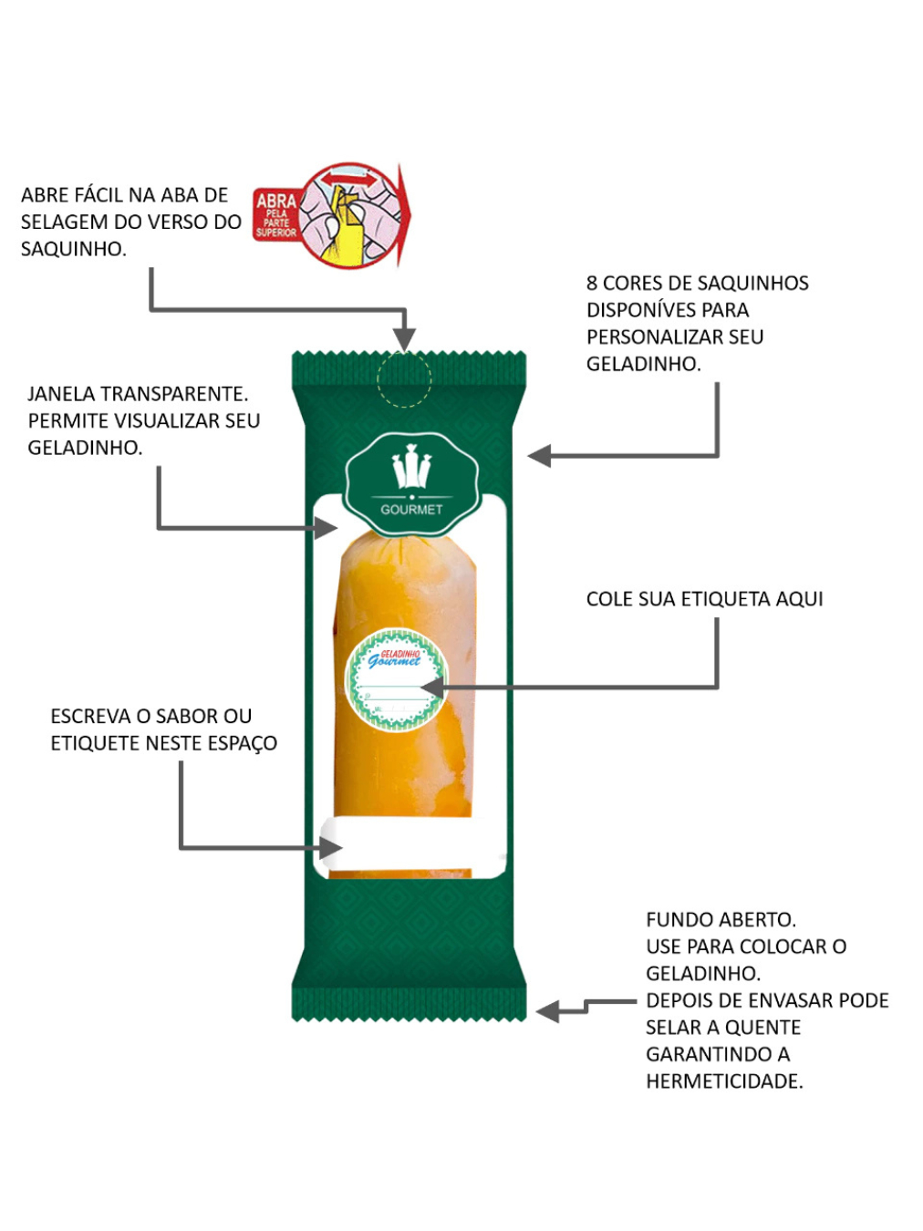 KIT Saquinho Higiênico BOPP Para Geladinho Gourmet / 4 pacotes (4x210 = 840 saquinhos)