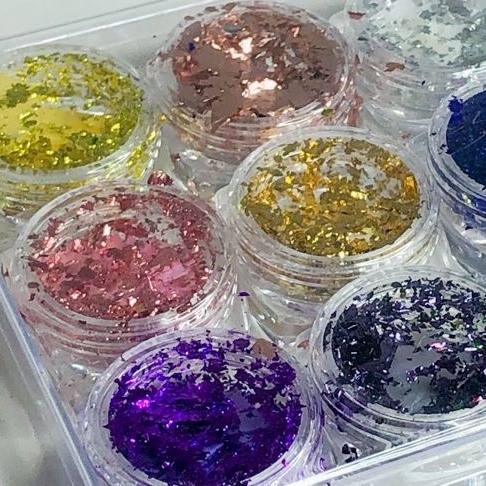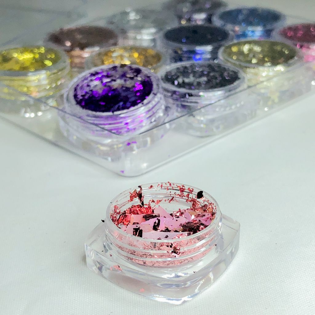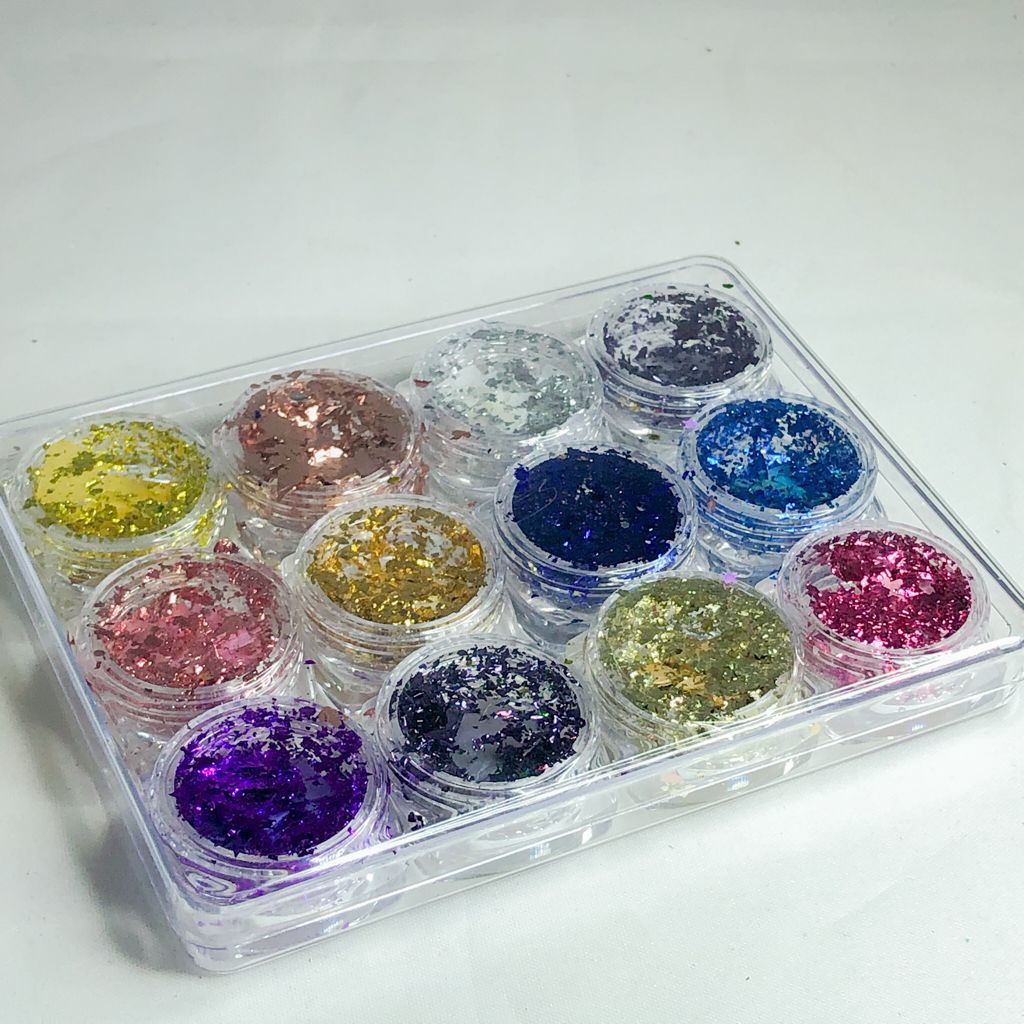 Kit Madrepérola Com Folha De Ouro Para Decoração De Unhas