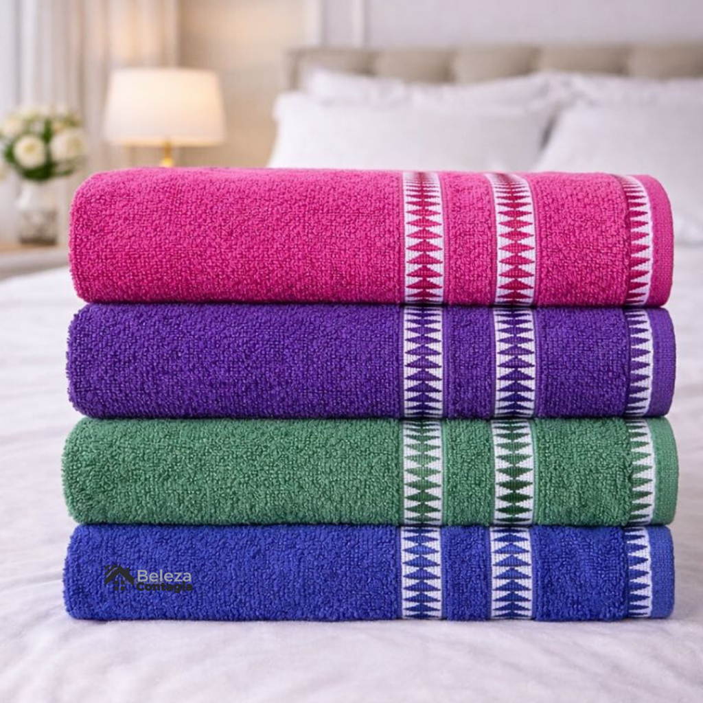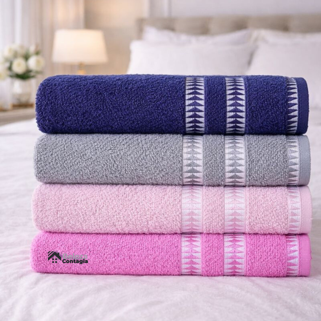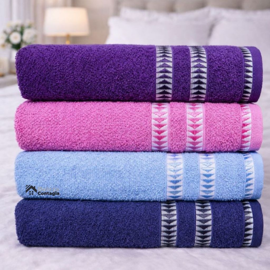 Kit 4 Toalhas de Banho Grandes Luxo 1,30m x 70cm 100% algodão Alta absorção- Cores Elegantes