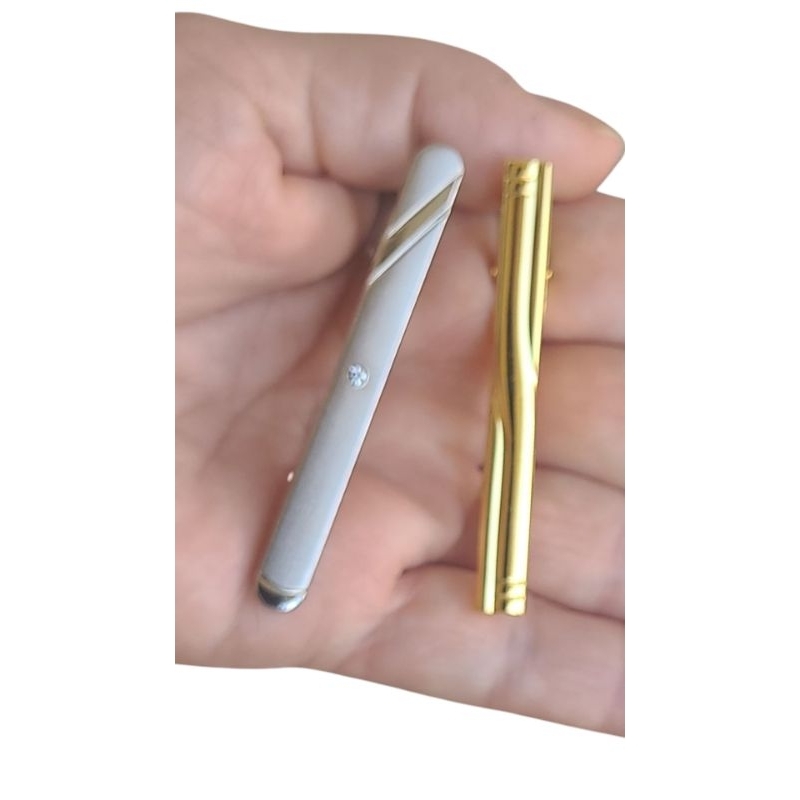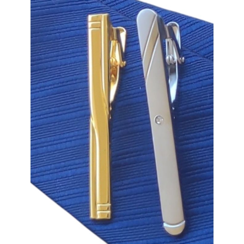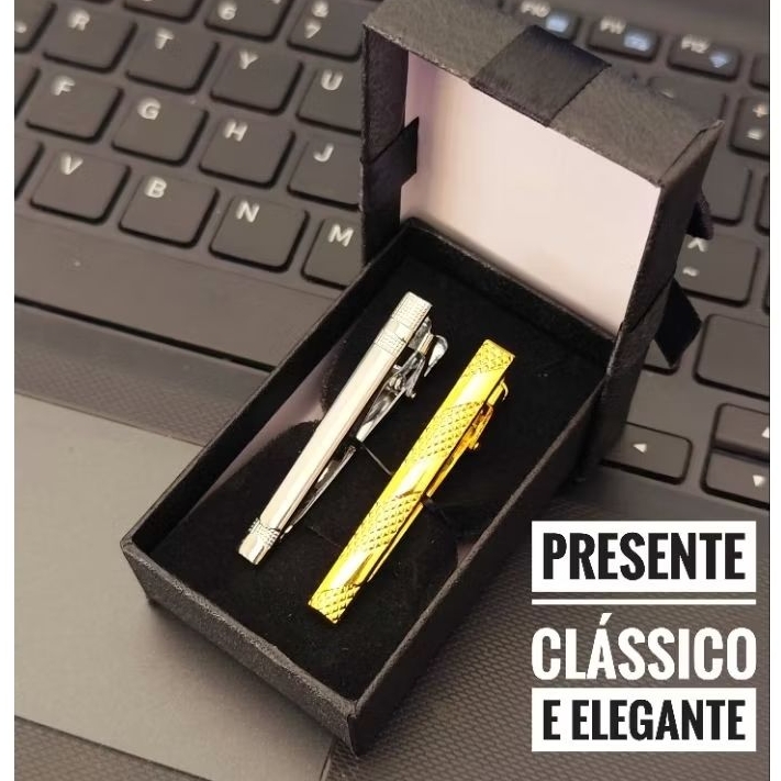 Kit de 2 Prendedores de Gravata Dourado e Prata Cromado Inoxidável Tradicional e Semi Slim 5cm e 6cm