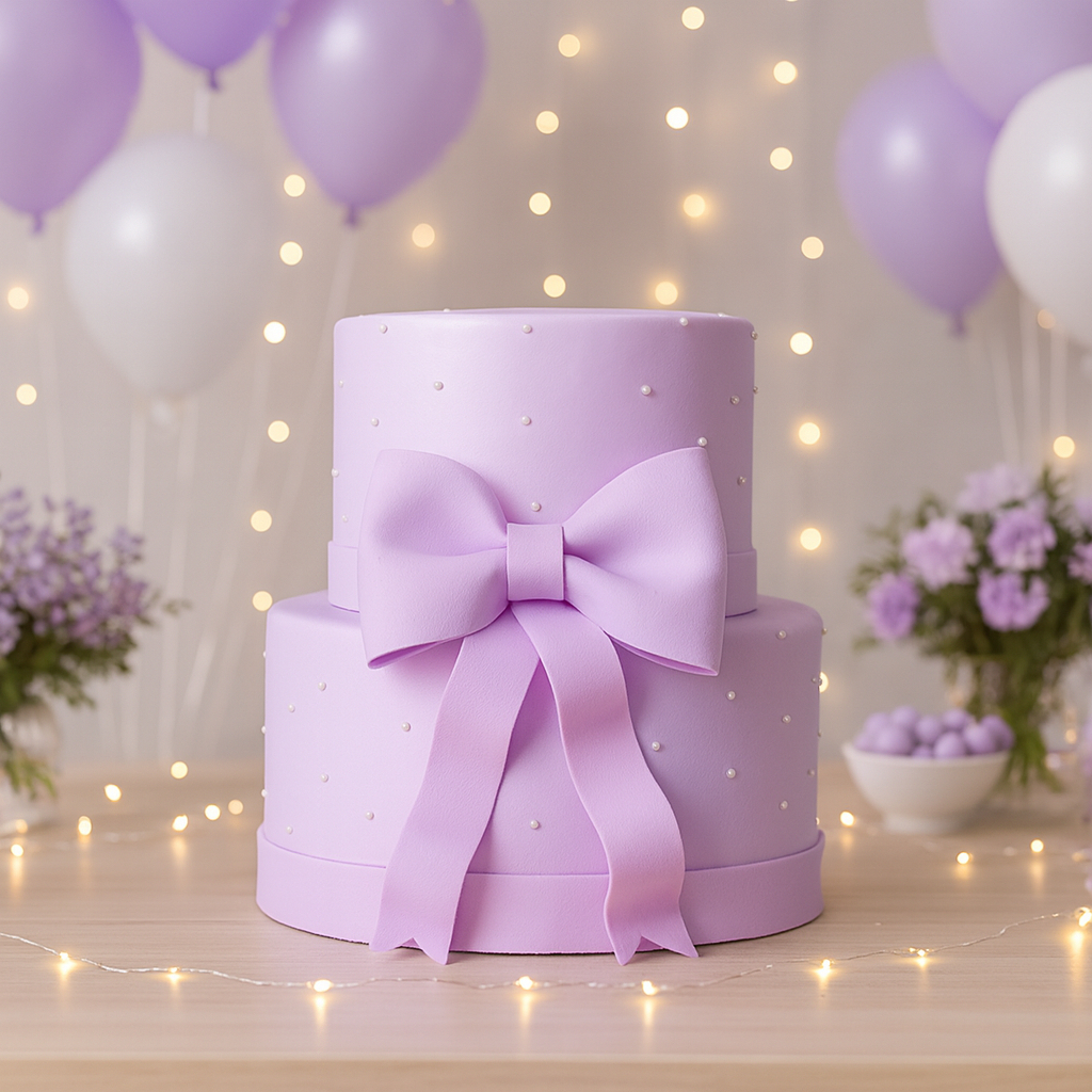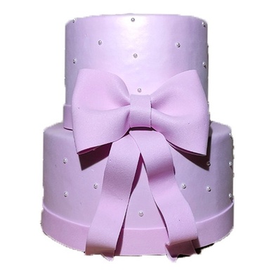 Bolo Fake Rosa Com Laço E Pérolas - Ideal Para Pegue E Monte