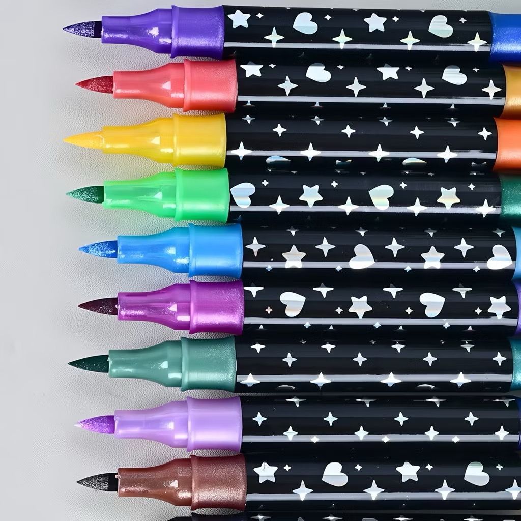 Marcador metálico 12/24/36/48/60 caneta de glitter de cabeça dupla marcador de cabeça dupla brilhante