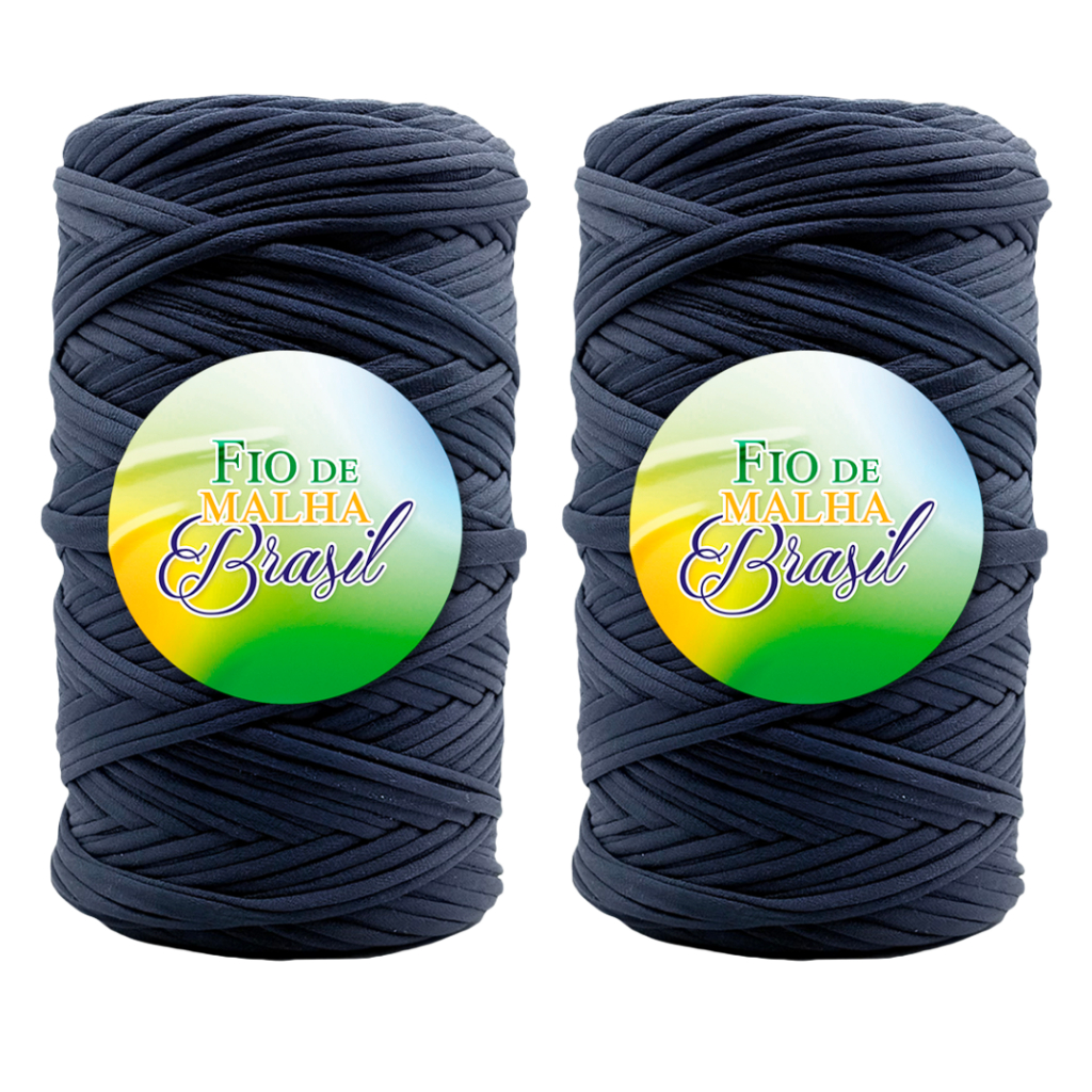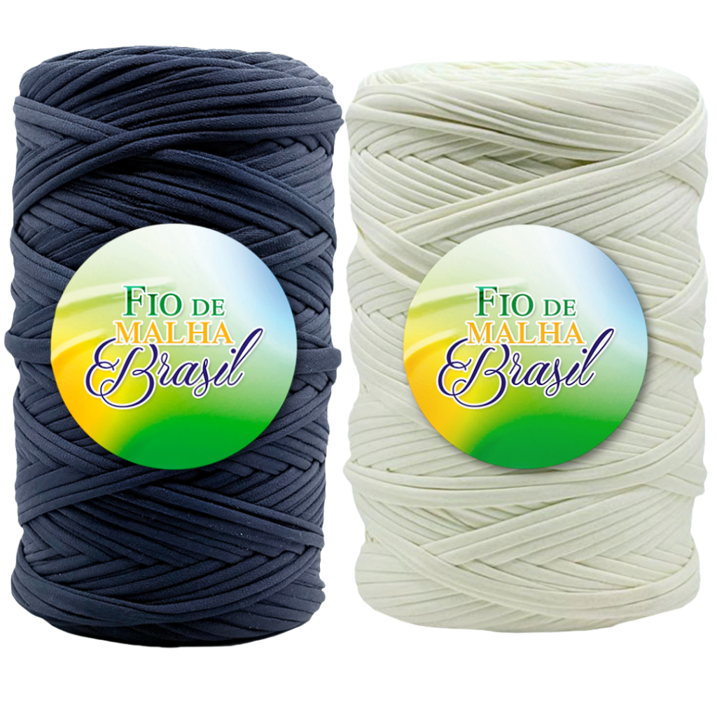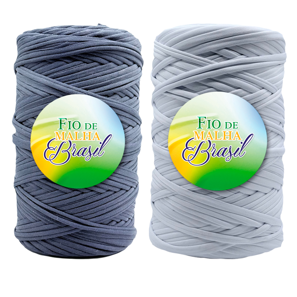 Fio de Malha Brasil Kit 2 Rolos de 500g - Cores Neutras - Preto, Branco, Azul Marinho, Cinza - Crochê Fio Residual