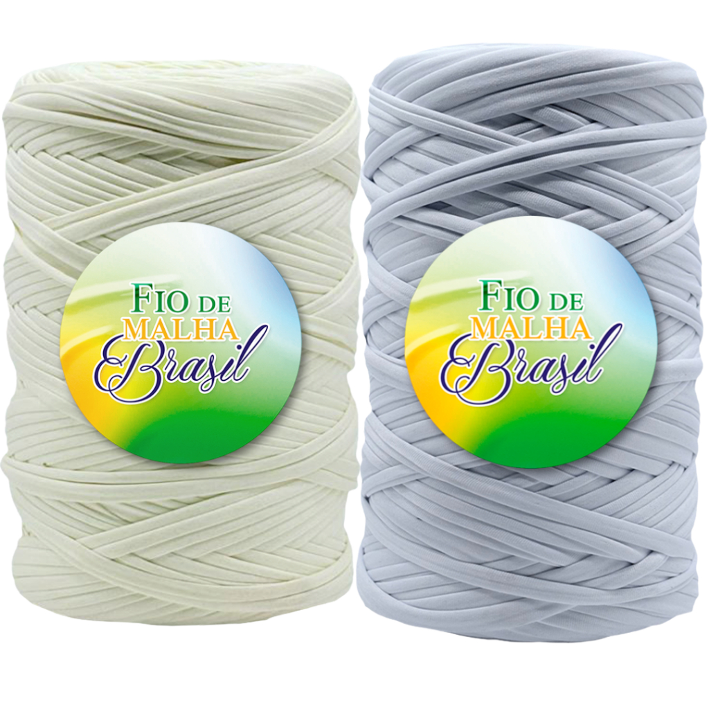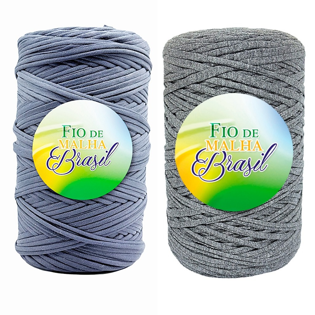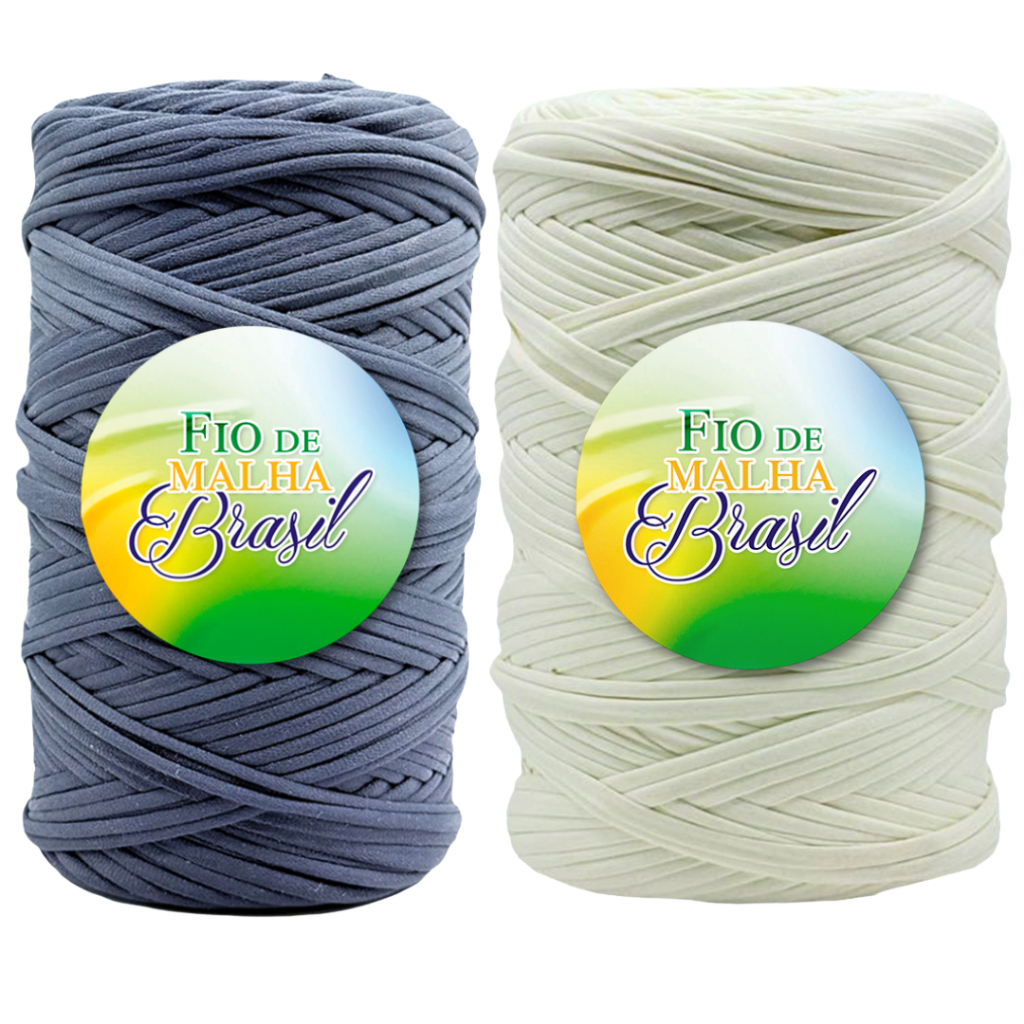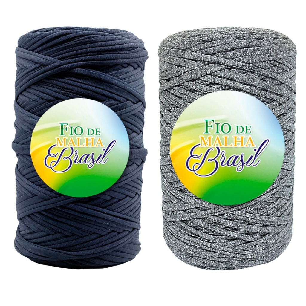 Fio de Malha Brasil Kit 2 Rolos de 500g - Cores Neutras - Preto, Branco, Azul Marinho, Cinza - Crochê Fio Residual