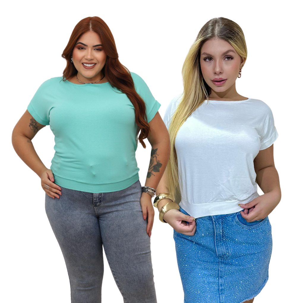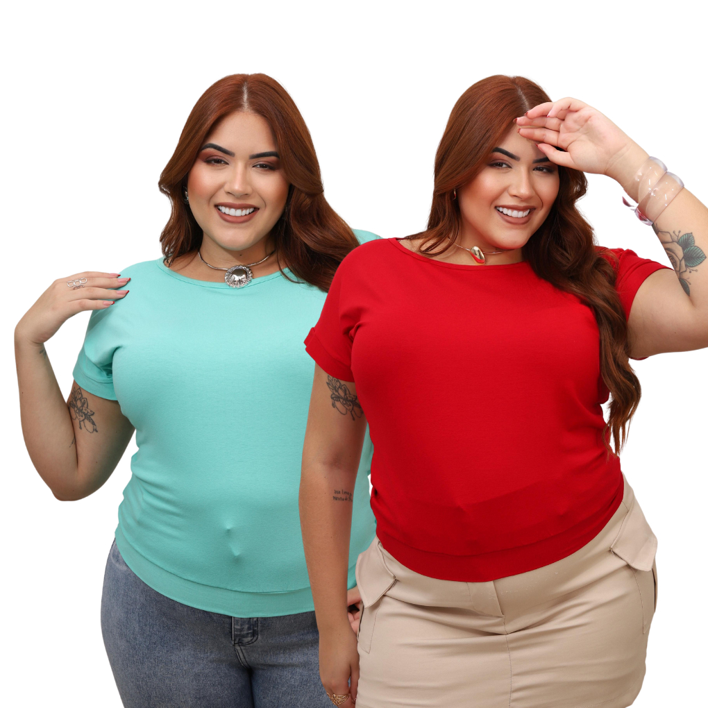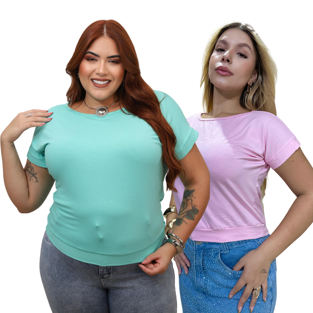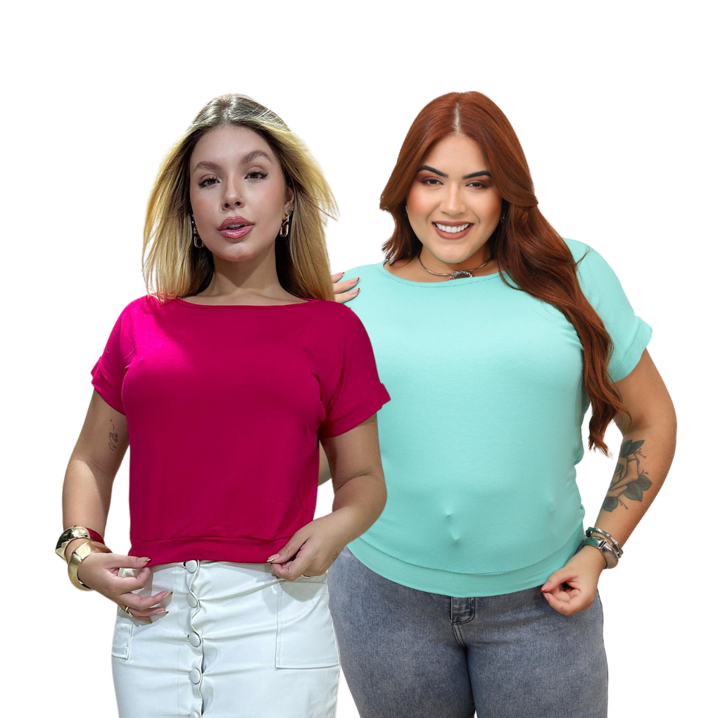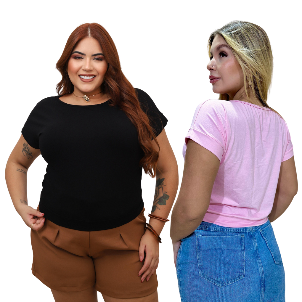 Kit 2 Blusas Feminina Básica Gola Canoa Blusinha Lisa em Malha Tamanho Até G1
