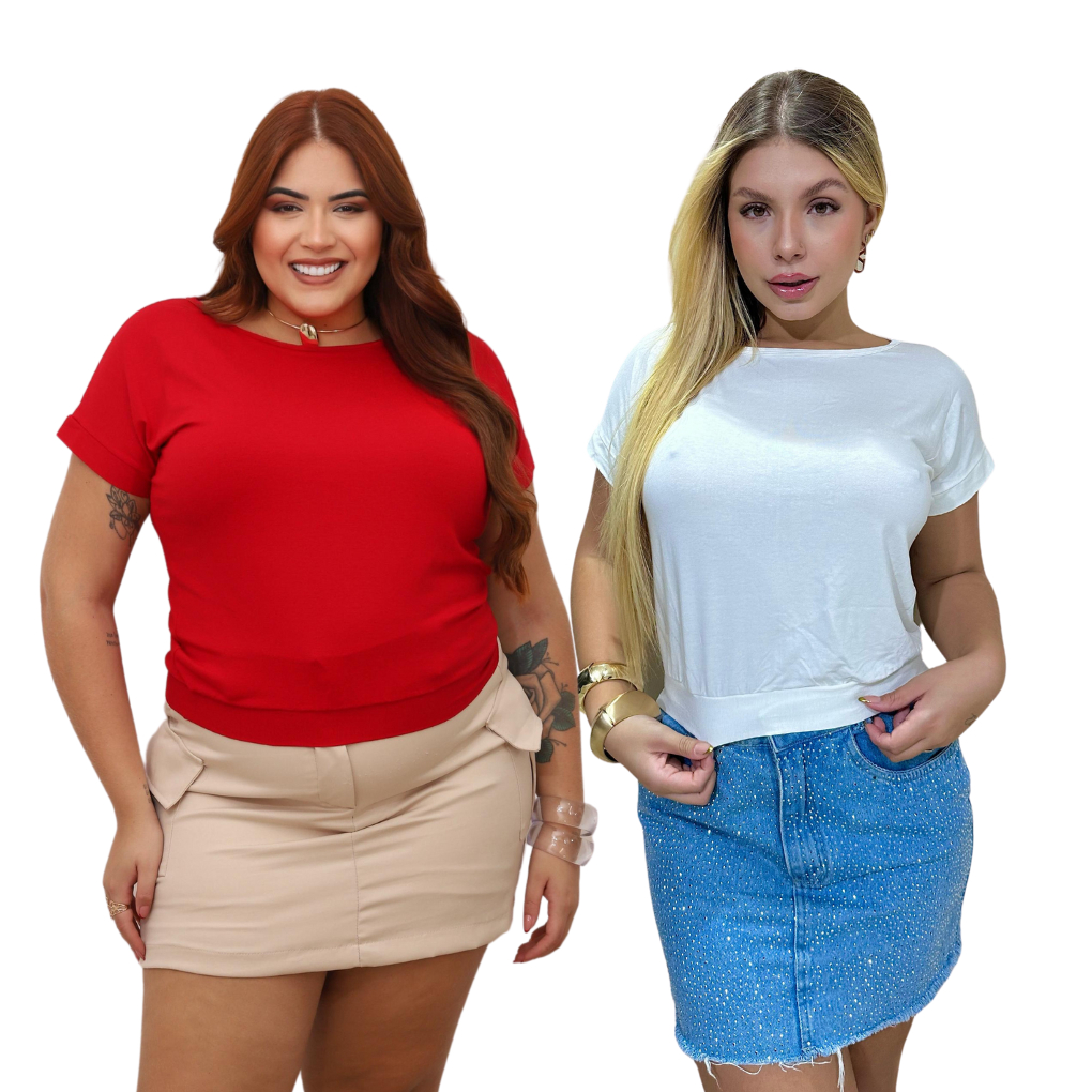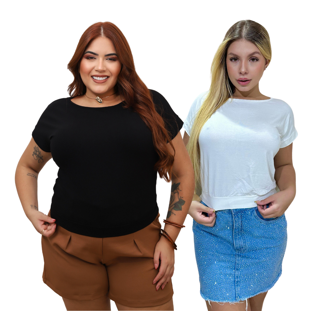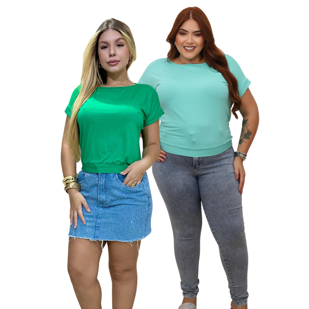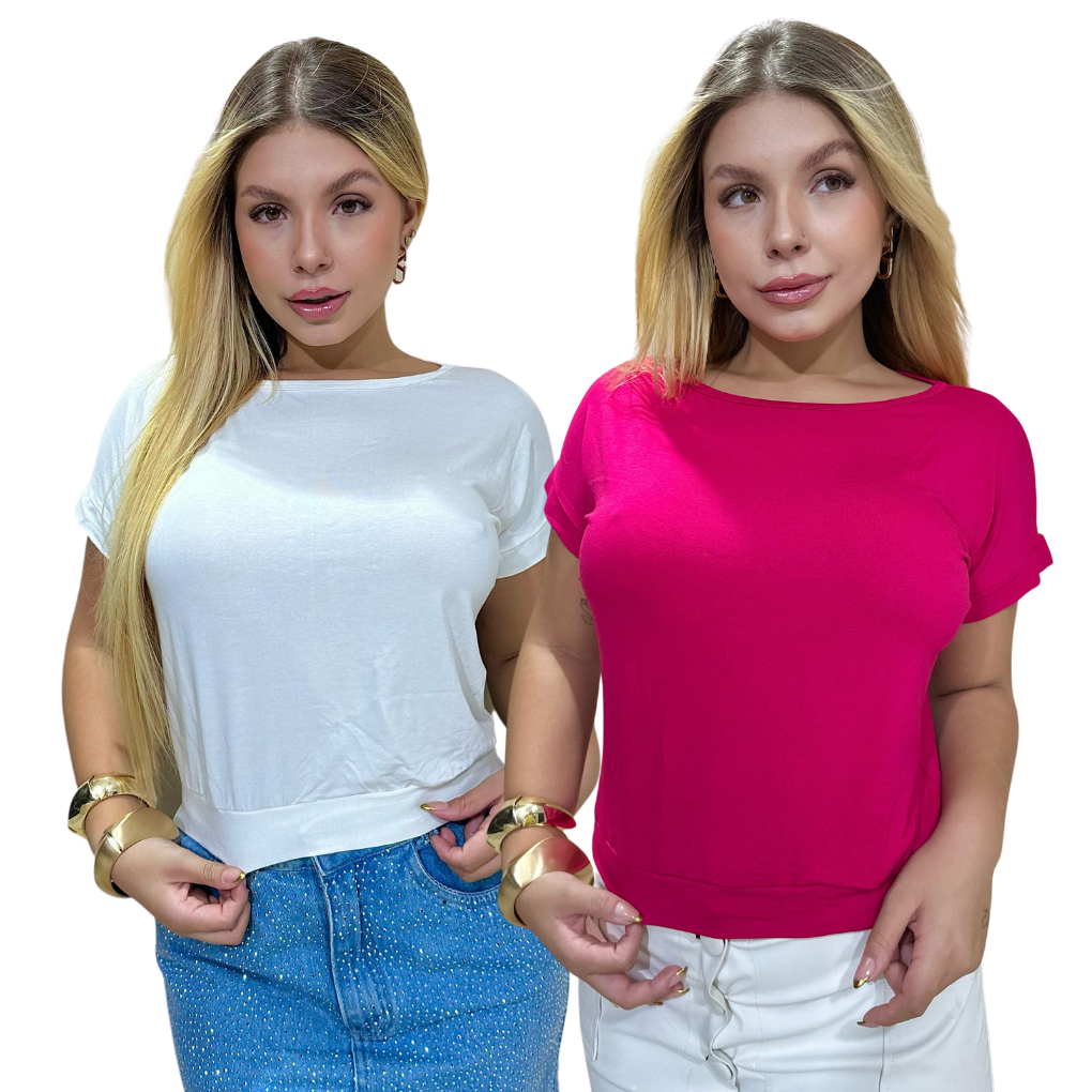 Kit 2 Blusas Feminina Básica Gola Canoa Blusinha Lisa em Malha Tamanho Até G1