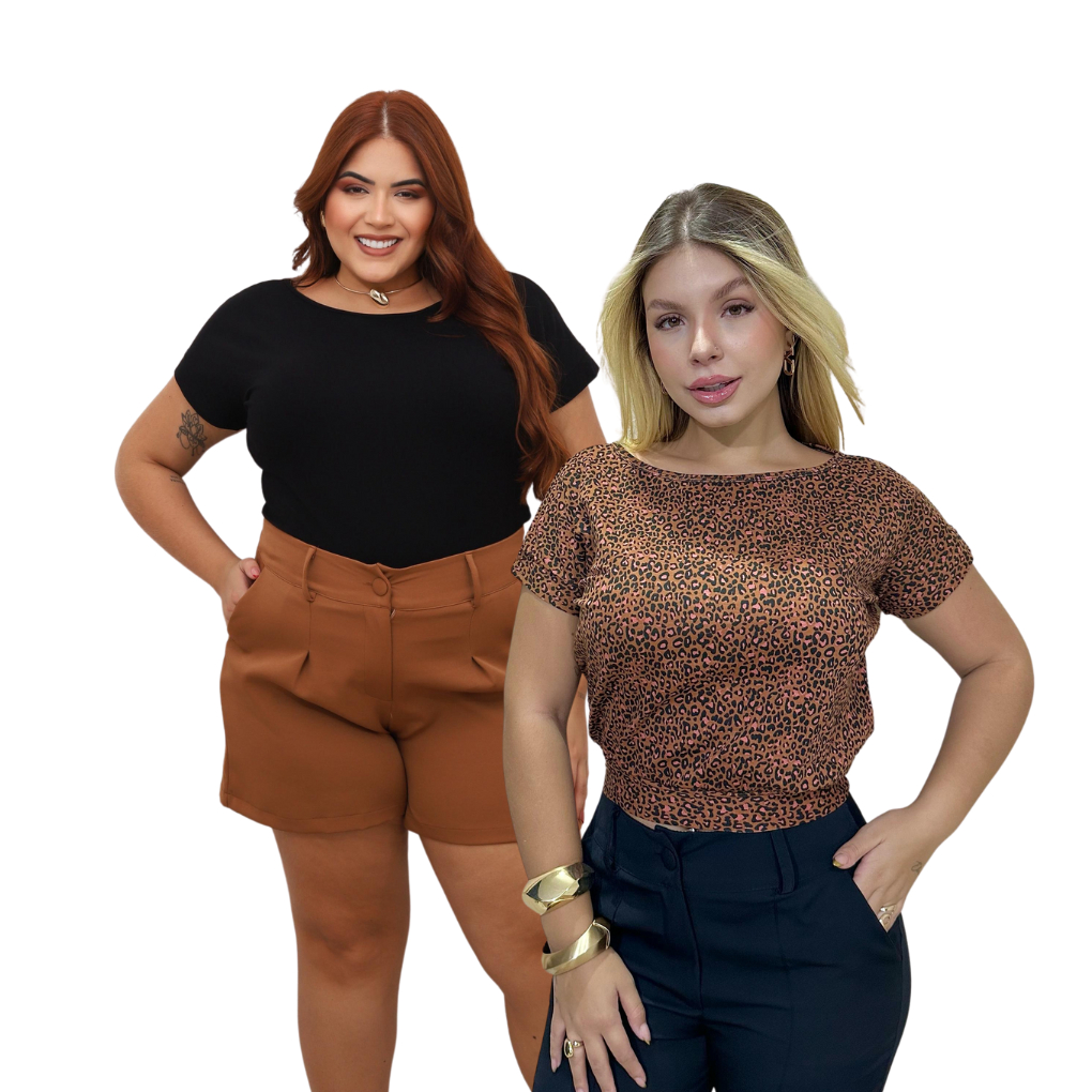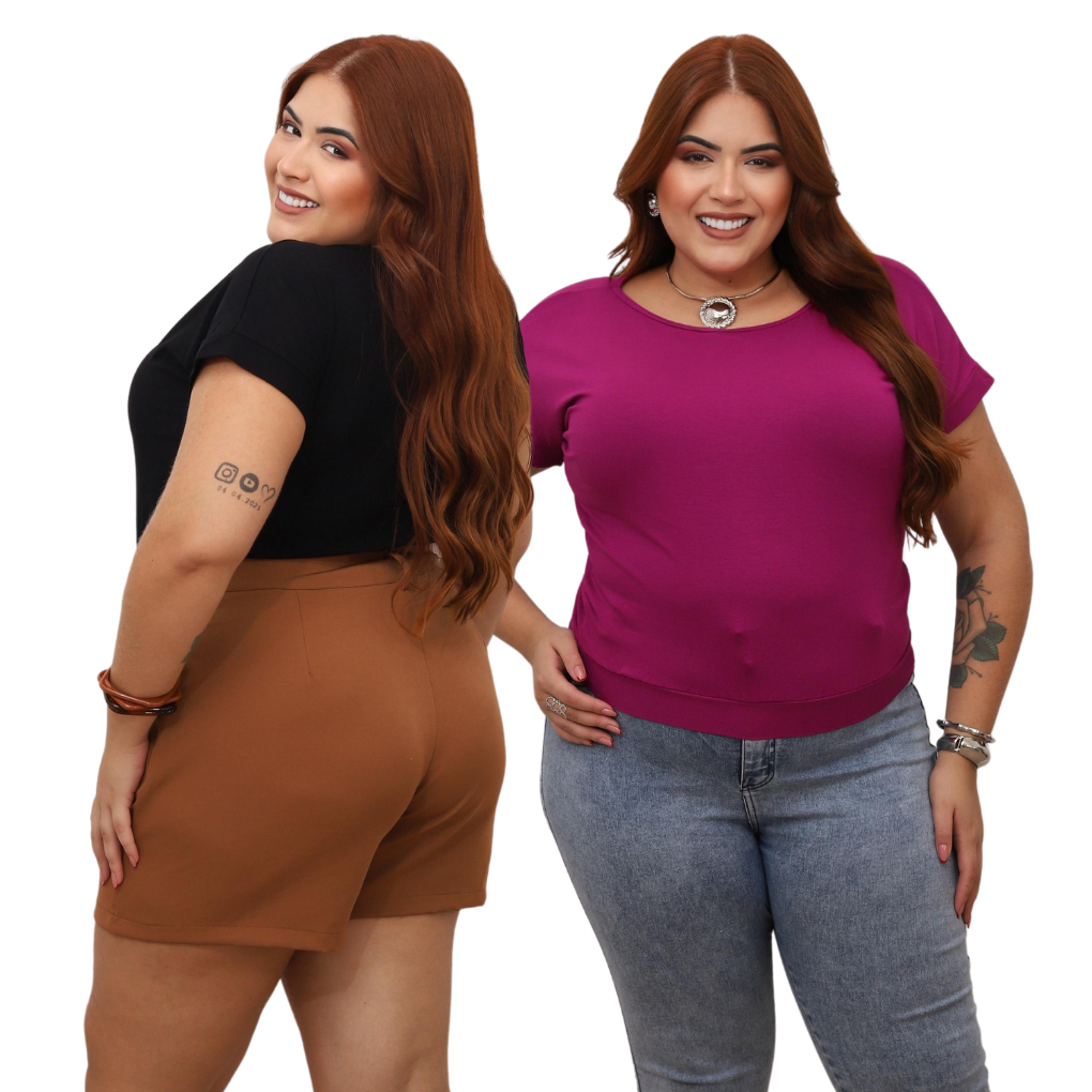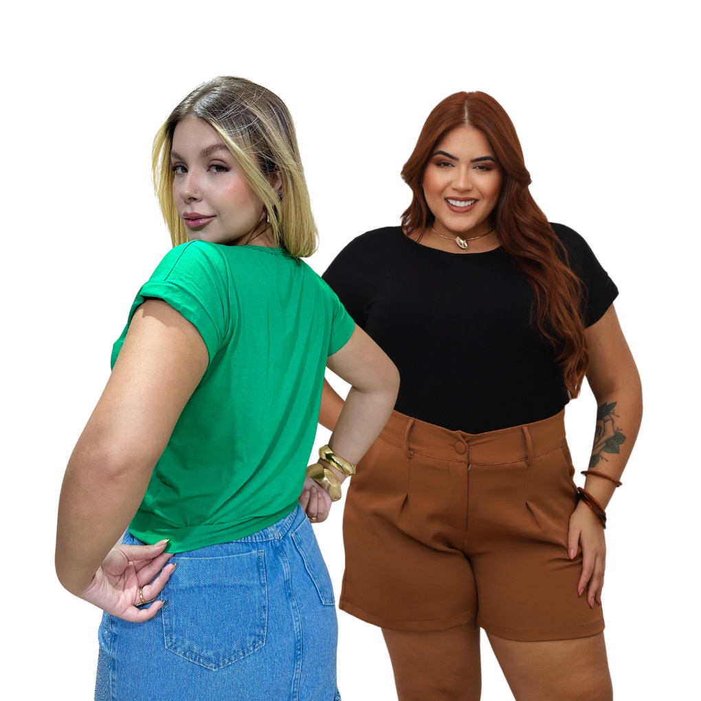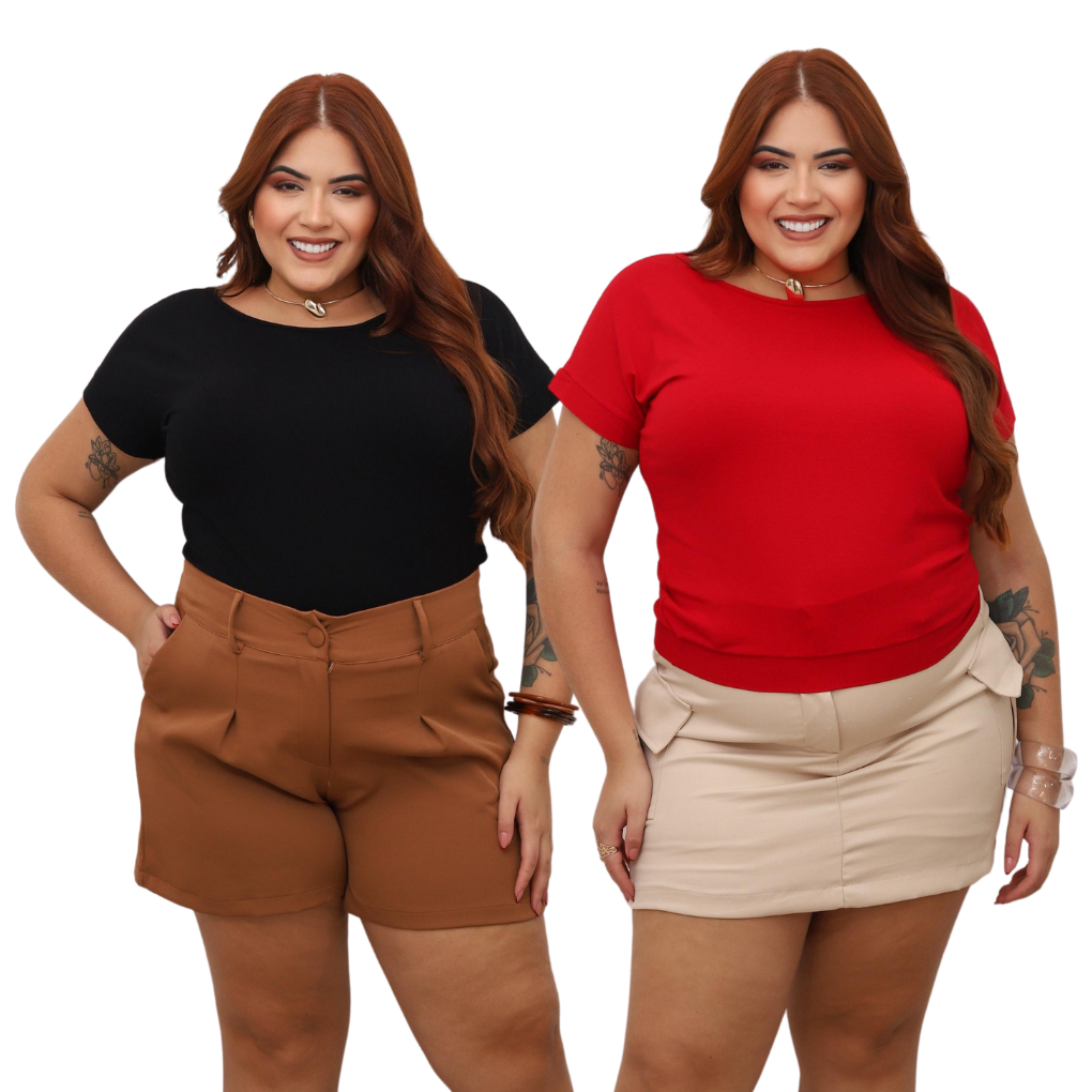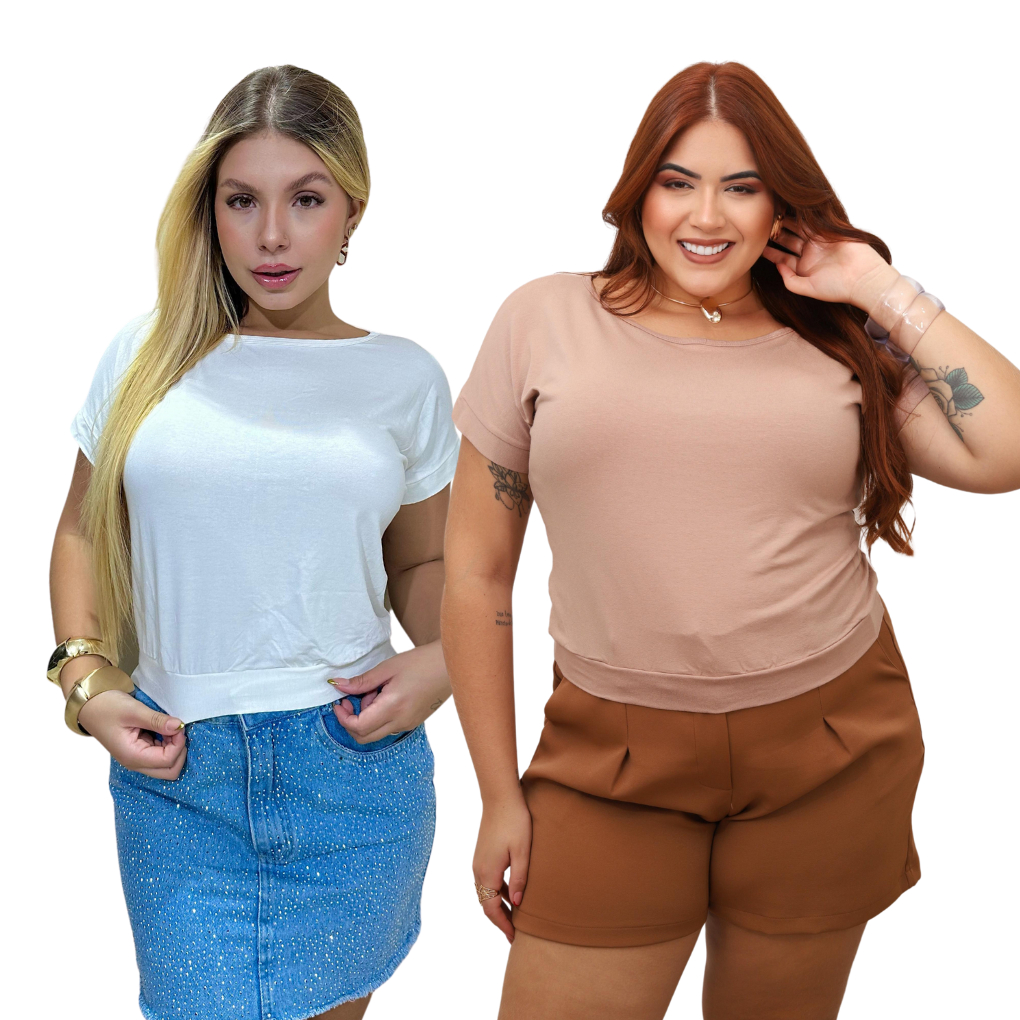 Kit 2 Blusas Feminina Básica Gola Canoa Blusinha Lisa em Malha Tamanho Até G1